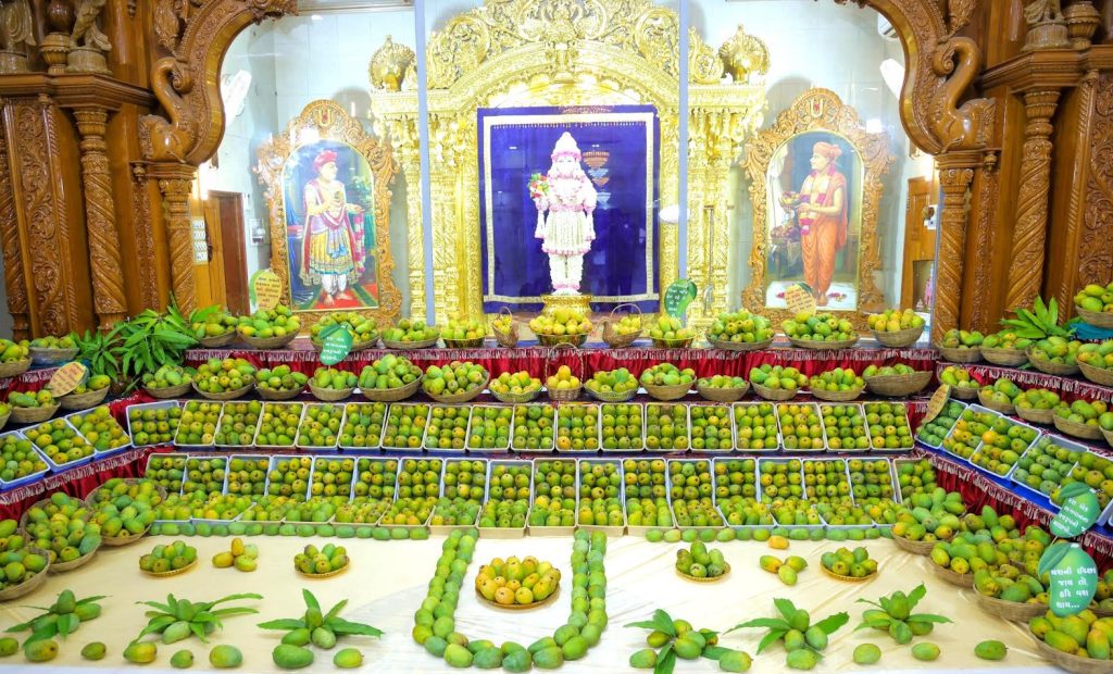 સ્વામિ ગુરુકુળમાં 1000 કિલો કેરીનો આમ્રકૂટ ભગવાનને અર્પણ કરાયો