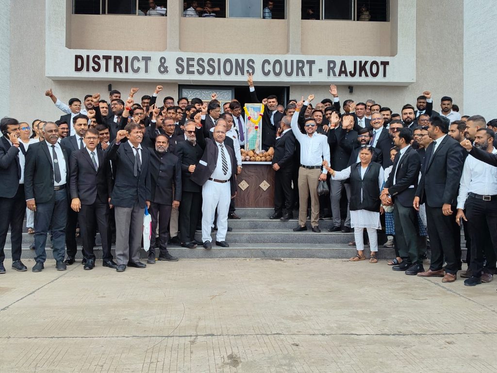 સૌરાષ્ટ્ર-કચ્છની જનતાના ન્યાય માટે વકીલોએ ફરી એક જૂથ થઈ ન્યાયની માંગ સાથે કર્યા સુત્રોચ્ચાર