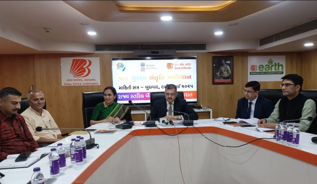 ભારત સરકારના નાણા મંત્રાલયના નાણાકીય સેવાઓ વિભાગ (DFS) દ્વારા 01.07.2025થી 30.09.2025 સુધી શરૂૂ કરાયેલા ત્રણ મહિનાના નાણાકીય સમાવેશ અને સામાજિક સુરક્ષા યોજના અંતર્ગત આયોજિત જન સુરક્ષા સંતૃપ્તિ અભિયાનની પ્રગતિ અને ઉદ્દેશ્યો વિશે મીડિયાને માહિતી આપવા માટે બેંક ઓફ બરોડા, અમદાવાદમાં એક પ્રેસ કોન્ફરન્સનું આયોજન કરવામાં આવ્યું હતું.