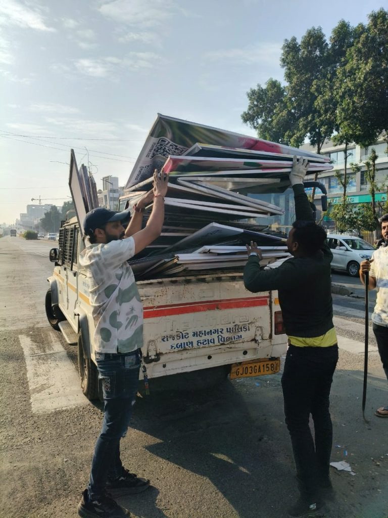 જામનગર રોડ,જલારામ ચોક,જંકશન પ્લોટ,રેસકોર્ષ રોડ,યુનિ.રોડ,150 ફુટ રોડ,નાણાવટી ચોક,સાધુવાસવાણી રોડ, પટેલ ક્ધયા છાત્રાલય,કોઠારીયા રોડ,સેટેલાઈટ ચોક પરથી 4430 બોર્ડ-બેનર જપ્ત કર્યા હતાં.