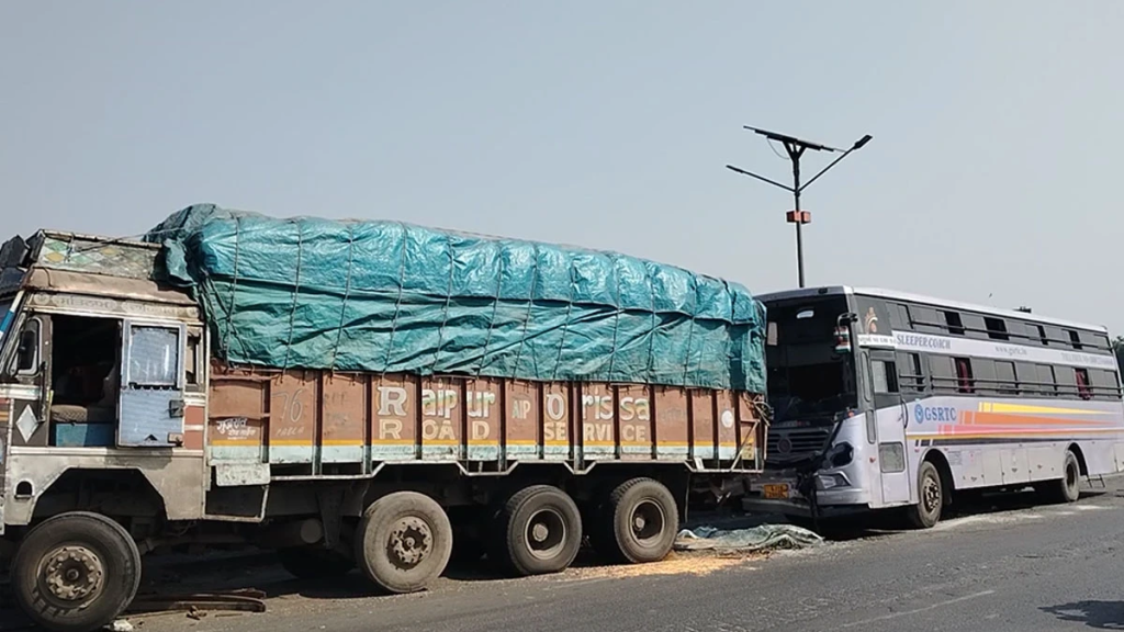બનાવની પ્રાપ્ત વિગત અનુસાર, આજે સવારે વાપીથી ચાણસ્મા તરફ એક એસટી બસ જઇ રહી હતી. આ એસટી બસ અમદાવાદ-મુંબઇ હાઇવે પર હતી ત્યારે ત્યાં ઉભેલી એક ટ્રક પાછળ ધડાકાભેર અથડાઈ હતી. અકસ્માતમાં બસના આગળના ભાગનો કચ્ચરઘાણ વળી ગયો હતો. બસમાં 50 જેટલા મુસાફરો સવાર હોવાનું જાણવા મળ્યું છે. અકસ્માતના આ બનાવમાં બસના ડ્રાઇવર-ક્ધડક્ટર સહિત 22 જેટલા મુસાફરોને ઇજા પહોંચી હતી.