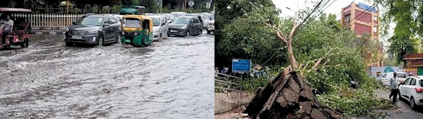 રસ્તાઓ તળાવ બની ગયા. તોફાન અને વરસાદને કારણે દિલ્હી-એનસીઆરમાં વાહનવ્યવહાર ઠપ્પ થઈ ગયો મેટ્રો સેવાને પણ અસર થઈ હતી.