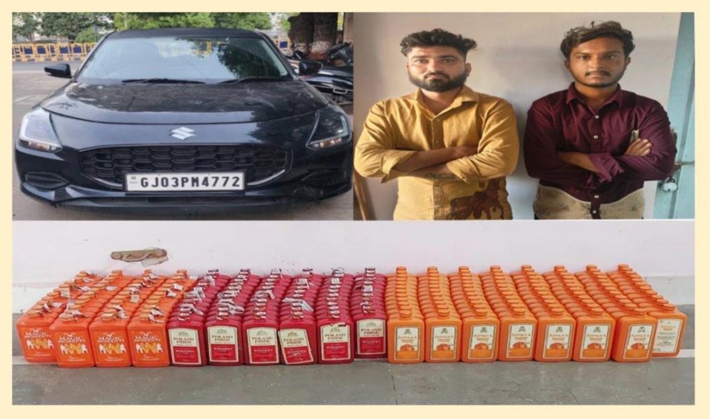 જાણવા મળતી વિગત મુજબ, એલસીબી ઝોન-2નાં પીએસઆઈ આર.એચ.ઝાલા, એએસઆઈ જયંતિભાઈ ગોહિલ, હરપાલસિંહ જાડેજા, રાજેશ મિયાત્રા સહિતનો સ્ટાફ પેટ્રોલીંગમાં હતો. દરમિયાન 150 ફુટ રીંગ રોડ પર આંબેડકરનગર શેરી નં.5માં બે શખ્સો કારમાં દારૂ સાથે ઉભા હોવાની બાતમીના આધારે પોલીસે દરોડો પાડી લલીત ઉગાભાઈ કંટારીયા અને ભાવેશ બાબુભાઈ પરમારને ઝડપી પાડી કારની તલાસી લેતાં વિદેશી દારૂના ચપલા નં.216 (કિ.રૂા.42000) મળી આવતાં પોલીસે દારૂ અને કાર મળી કુલ રૂા.5,42,000નો મુદ્દામાલ કબજે કરી બંને આરોપીની ધરપકડ કરી ધોરણસરની કાર્યવાહી હાથ ધરી છે.