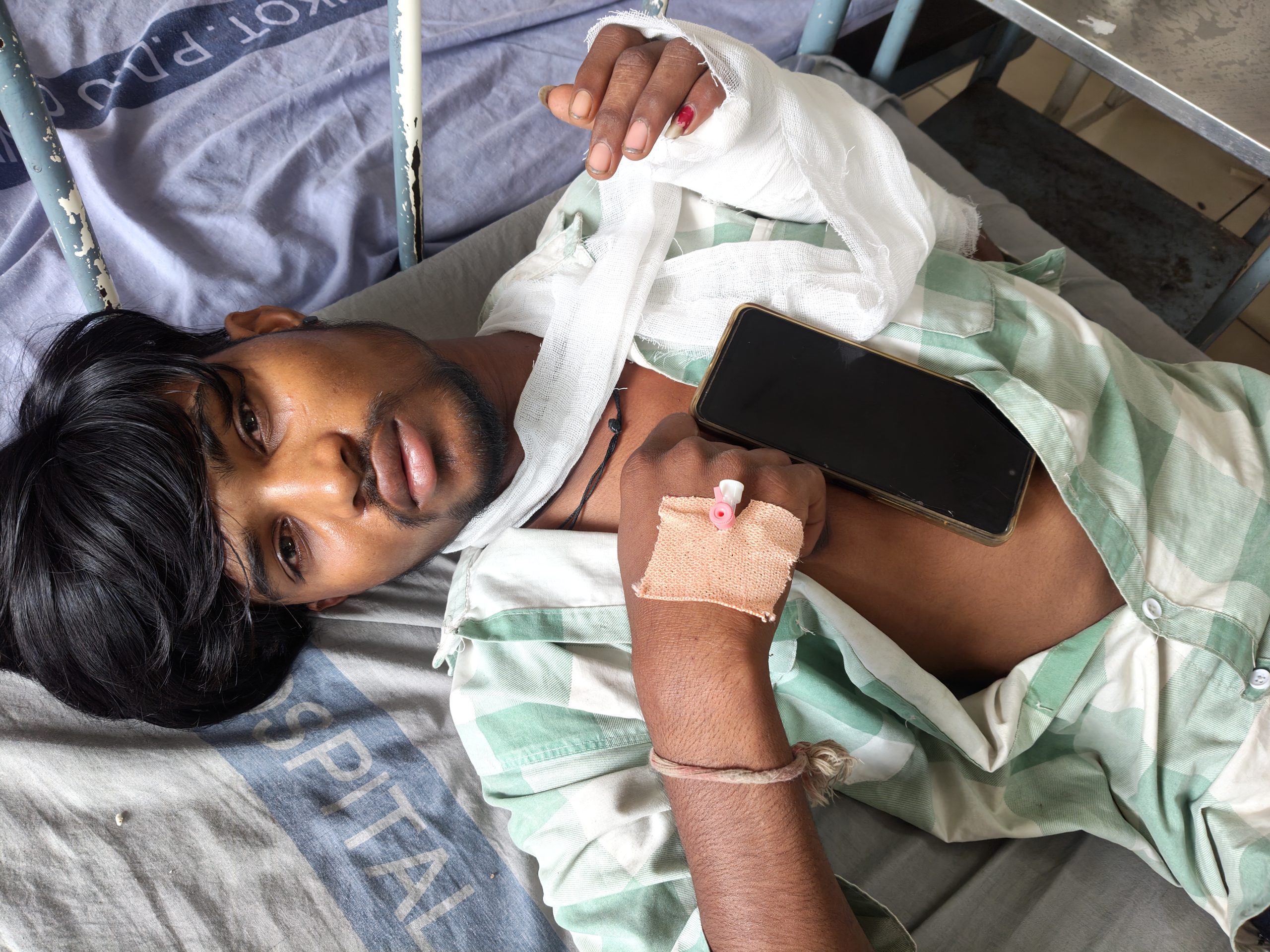 ગુરુપ્રસાદ ચોક પાસે ત્રિવેણીનગરનો બનાવ: ઇજાગ્રસ્ત યુવાનને સારવારમાં ખસેડાયો