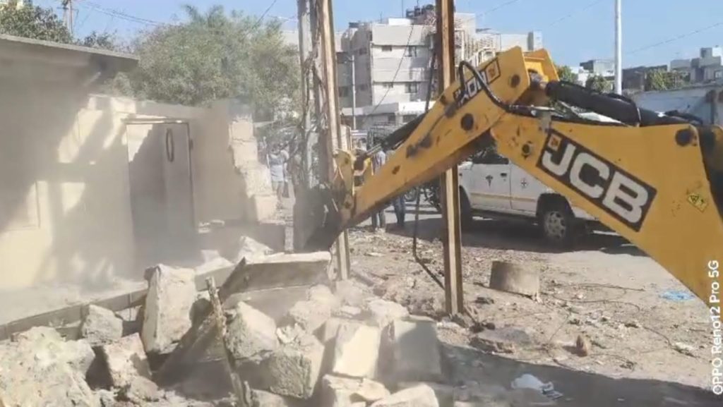 વેરાવળ શહેરમાં રસ્તો પહોળો કરવા ગેરકાયદેસર 31 જેટલી દુકાનો પર નગરપાલીકા તંત્ર દ્વારા બુલડોઝર ફેરવી ગેરકાયદેસર ખડકાયેલ દબાણો દુર કરાયા છે.વેરાવળના હાર્દસમા પોસ્ટ ઓફિસ રોડ ઉપર માર્જીન અને ગટરની જગ્યા ઉપર ગેરકાયદેસર રીતે બની ગયેલ 31 જેટલી દુકાનો ઉપર નગરપાલિકા તંત્રનું બુલડોઝર ફરી વળ્યુ હતું. ટ્રાફીક સમસ્યા હલ કરવા નગરપાલીકાએ કરેલ કામગીરીને લોકોએ આવકારી શહેરમાં પાર્કીંગ વગરના ખડકાયેલા બિલ્ડીંગો સામે પણ આવી જ કામગીરી કરવા લાગણી વ્યક્ત કરી રહ્યા છે.
