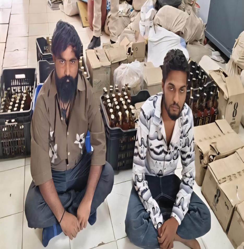 તે દરમ્યાન એક ફોરવ્હીલ કાર નેશનલ હાઈવે તરફ થી હજામચોરા ગામ તરફ આવતા આડશ ઉભી કરી તેને રોકવા પ્રયત્ન કરવામાં આવ્યો હતો.પરંતુ કારનો ચાલક પોતાની કાર રીવર્સ લઇ યુ ટર્ન લઈ ને પાછો હાઈ વે તરફ નાશી જતાં તેનો પીછો કરી કાર તથા તેમાં બેસેલ બે શખ્સો ને પકડી પાડી વર્ના કાર નં-જીજે-03-એલબી -1319 માથી ભારતીય બનાવટની અલગ-અલગ બ્રાન્ડની ઇંગ્લીશ દારૂૂની નાની મોટી 519 નંગ ઈંગ્લીશ દારૂૂ ની બાટલી જેની કિ.રૂૂ.3,07,725 તથા કાર કિ.રૂૂ.3,00,000 તથા મોબાઈલ ફોન ર મળી કુલ રૂૂપીયા 6,37,725 નો મુદામાલ પકડી પાડી આરોપીઓ અબ્દુલ ઉર્ફે સોપારી અનવરભાઈ ભટ્ટી ( રહે હાલ-સામખિયાળી તા. ભચાઉ ) અને અરમાન ઈકબાલભાઈ જૂણેજા (મોરબી) ની અટકાયત કરી હતી. આ કાર્યવાહી ધોલ પો.સ્ટે. ના પો. ઇન્સ. એચ.વી.રાઠોડ તથા પો.સબ ઇન્સ. એમ.એમ. કુંભારવાડીયા તથા સ્ટાફે કરી હતી.