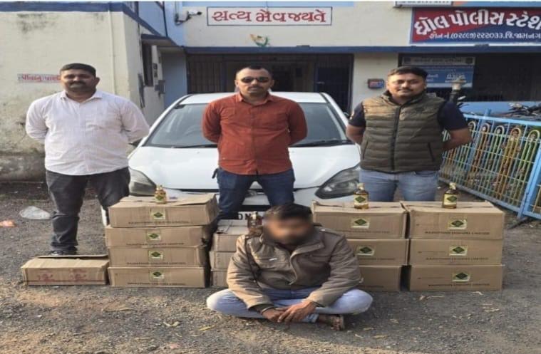 એલસીબીના પોલીસ ઇન્સ.વી.એમ.લગારીયાના માર્ગદર્શન મુજબ એલ.સી.બી.ના પો.સ.ઈ. સી.એમ.કાંટેલીયા તથા પો.સ.ઇ. પી.એન.મોરી તથા સ્ટાફના માણસો જામનગર ગ્રામ્ય તથા ધ્રોલ પોલીસ સ્ટેશન વિસ્તારમાં પેટ્રોલીંગમાં હતા. દરમ્યાન એલ.સી.બી.ને મળેલ ખાનગી હકિકતના આધારે જામનગર રાજકોટ હાઇવે રોડ ઉપર ધ્રાંગડા ગામ ના પાટીયા પાસે રોડ ઉપર થી આરોપી રવીરાજસિંહ સદુભા જાડેજા ( રહે. ખંભાળીયા ટોલ નાકા પાસે, પેટ્રોલપંપની પાછળ, ખંભાળીયા જી.દેવભુમિ દ્વારકા) વાળા ની જી.જે. 03 ડી એન 9400 નંબર ની ફોર્ડ ફીગો મોટરને આંતરી હતી.