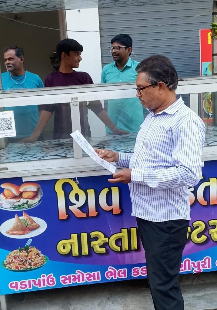 ફૂડ વિભાગ દ્વારા આજરોજ ખાણી-પીણીના અને અન્ય ખાદ્ય ચીજોનું વેચાણ કરતા 27 ધંધાર્થીઓને ત્યાં ચકાસણી હાથ ધરેલ જેમાં (01)ક્રિષ્ના ડિલક્સ પાન કોલ્ડ્રિંક્સ -લાઇસન્સ મેળવવા બાબતે સૂચના (02)બજરંગ પાણીપુરી -લાઇસન્સ મેળવવા બાબતે સૂચના (03)ભવાની સુપર માર્ટ -લાઇસન્સ મેળવવા બાબતે સૂચના (04)ક્રિષ્ના ગાંઠિયા -લાઇસન્સ મેળવવા બાબતે સૂચના (05)બજરંગ ઢોસા -લાઇસન્સ મેળવવા બાબતે સૂચના (06)ઠાકરધણી પાન -લાઇસન્સ મેળવવા બાબતે સૂચના (07)શક્તિ ટી સ્ટોલ -લાઇસન્સ મેળવવા બાબતે સૂચના (08)રાધે આઇસ્ક્રીમ -લાઇસન્સ મેળવવા બાબતે સૂચના (09)કટક બટક ફૂડ ઝોન -લાઇસન્સ મેળવવા બાબતે સૂચના આપવામાં આવેલ. તથા (10)ન્યુ પટેલ આઇસ્ક્રીમ (11)શ્રીનાથજી ફૂડ કોર્પોરેશન (12)અતુલ આઇસ્ક્રીમ (13)બજરંગ મોમોઝ સેન્ટર (14)શિવશક્તિ દાબેલી (15)શ્રી ક્રિષ્ના આઇસ્ક્રીમ (16)જય અંબે પ્રોવિઝન સ્ટોર (17)લાઈફ કેર ફાર્મસી (18)મનમંદિર કોલ્ડ્રિંક્સ (19)જય કિશન ડેરી ફાર્મ (20)પાલવ આઇસ્ક્રીમ (21)ખોડિયાર પ્રોવિઝન સ્ટોર (22)વેણુ રેસ્ટોરેન્ટ (23)સુંધાગ ડેરી ફાર્મ (24)મુરલીધર ફરસાણ (25)ભાવિક ટ્રેડિંગ (26)ખોડિયાર હોટલ (27)જલારામ ખમણ હાઉસની ચકાસણી કરવામાં આવેલ હતી.