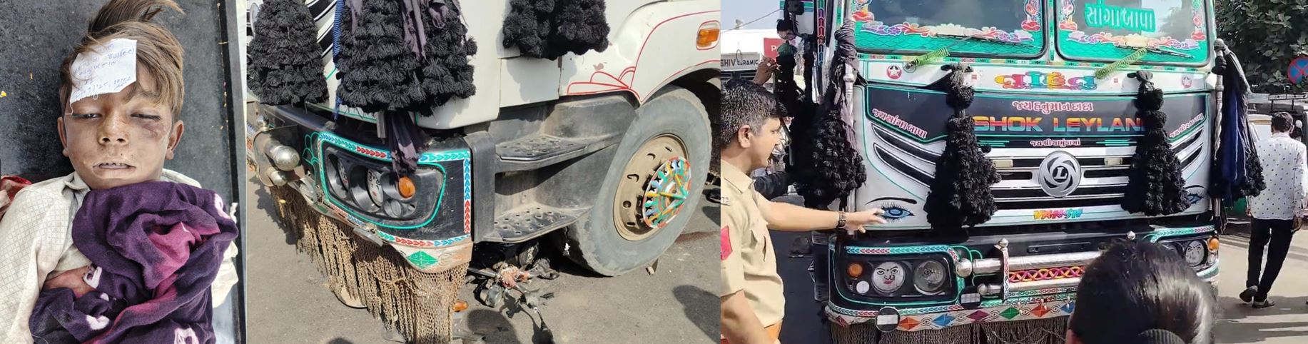 શહેરના મોરબી રોડ પર જકાતનાકા પાસે પુરપાટ ઝડપે દોડતાં ડમ્પરની ઠોકરે બાઈક ચડી જતાં સાત વર્ષના બાળક ઉપર ડમ્પરના વ્હીલ ફરી વળતા પિતાની નજર સામે જ પુત્રનું કરૂણ મોત નિપજ્યું હતું. લાલપરીમાં રહેતાં પિતા-પુત્ર બાઈક લઈ દવા લેવા જતાં હતાં ત્યારે ડમ્પર ચાલક અકસ્માત સર્જી બાદમાં ડમ્પર મુકી નાસી છુટયો હતો. બનાવને પગલે લોકોના ટોળા એકઠા થયા હતાં. આ બનાવથી પરિવારમાં ગમગીની છવાઈ જવા પામી છે.