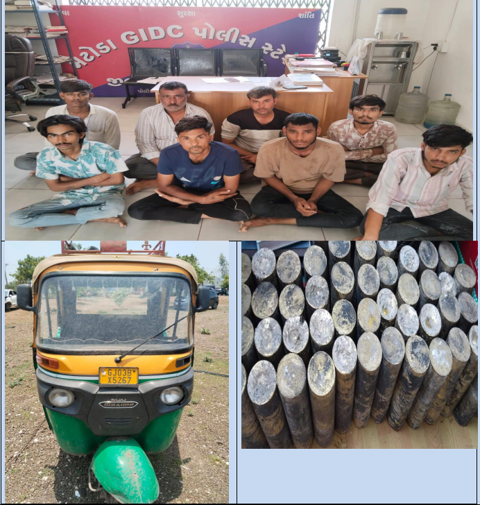 પોલીસે આરોપીઓ પાસેથી એક રીક્ષા સહીત રૂ. 8.42 લાખનો મુદામાલ જપ્ત કર્યો હતો. આ બનાવમા ગોપાલ ચૌહાણ અગાઉ અમરેલીનાં ખાંભા જીલ્લામા પ્રોહીબીશન એકટનાં ગુના સહીત 3 ગુનામા પોલીસ ચોપડે ચડી ચુકયો છે તેમજ પોલીસે પાસેથી જે માહીતી મળી હતી તે આરોપી સુરેશ અકબરીએ આ ચોરાઉ મુદામાલ ખરીદ કરી પોતાની ગુરૂકૃપા મેટલ કાસ્ટ નામની ભઠ્ઠીમા ઓગાળી ઢાળીયા બનાવી નાખ્યા હતા આરોપીમા એક શખસ કંપનીનો પુર્વ કર્મચારી હોવાનુ જાણવા મળ્યુ છે .