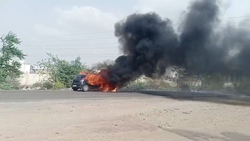 ફાયરની ટુકડી પહોંચે તે પહેલાં આગે મોટું સ્વરૂૂપ ધારણ કરી લીધું હતું અને કાર સંપૂર્ણ પણે ભડકે બળી હતી. જેથી કાર ની અંદર રહેલા કારના કાગળો વગેરે બળીને ખાખ થયા હતા. ફાયરે પાણીનો મારો ચલાવી આગને બુજાવી દીધી હતી. જોકે આ બનાવમાં મામા ભાણેજ બહાર નીકળી જતાં તેઓનો બચાવ થયો હતો, અને કોઈ જાનહાની થઈ નથી. પરંતુ કાર ટોટલ લોસ થવા પામી છે.