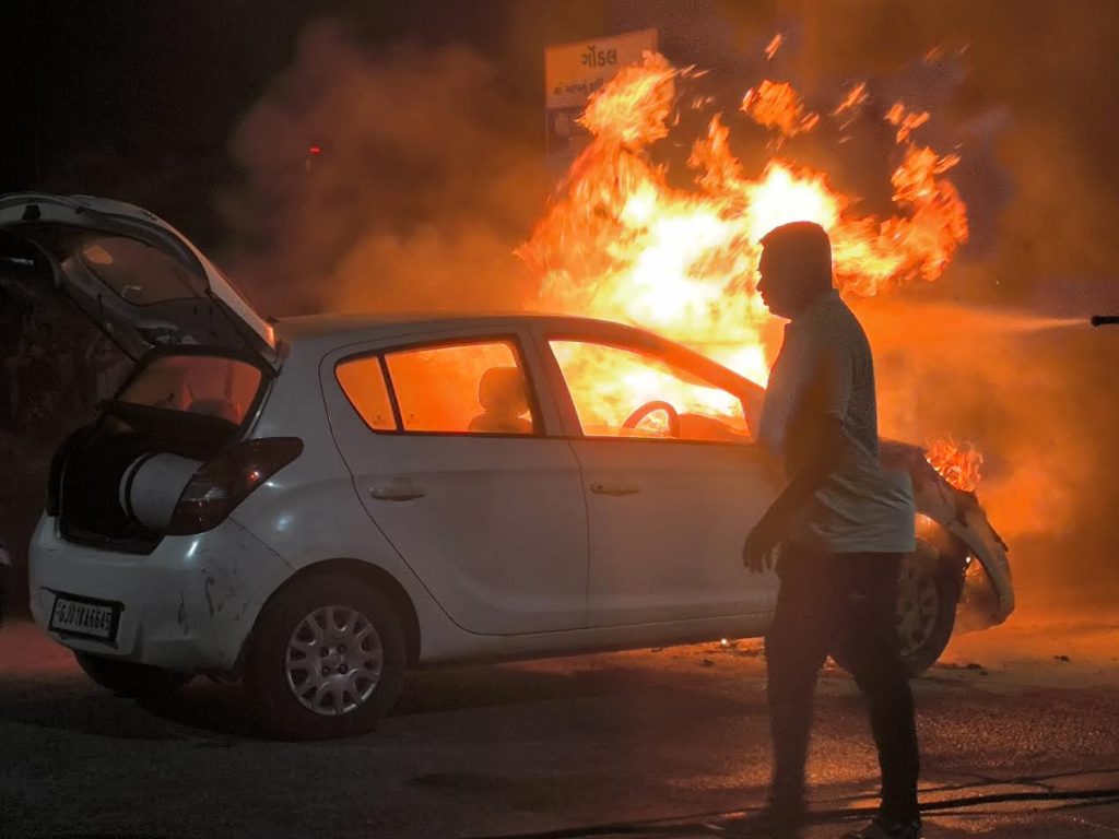 ગોંડલ સાંઢીયા પુલ પાસે ચાલુ કારમાં આગ લાગી