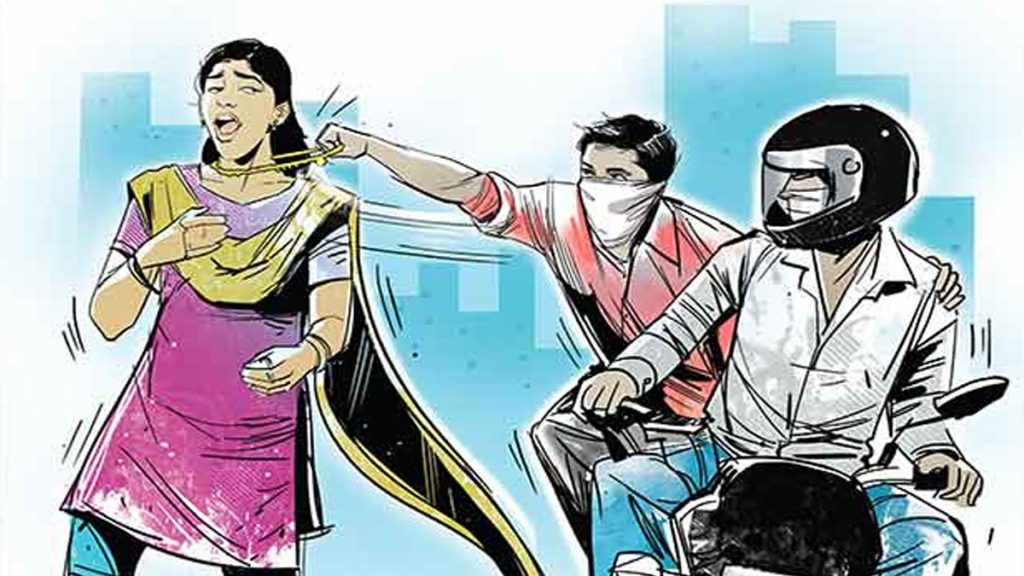 તા.25/11ના રોજ સાંજના સવા સાતેક વાગ્યાની આસપાસ હુ તથા મારી ભત્રીજી સરસ્વતી તથા સરસ્વતીની બહેનપણી સરનીયા એમ અમો ત્રણેય ચાલીને મનપા કમિશ્નરના બંગલા પાસે આવેલ બગીચામાં વોકિંગ કરવા માટે ચાલીને નીકળ્યા હતાં.અમે ઘરથી થોડેક આગળ આવેલ વિદ્યાનગર શેરી નં-11ના ખુણે આવેલ રજપુત સમાજની વાડી પાસે પહોંચ્યા ત્યારે અમારી સામેથી ડબલ સવારી મોટર સાયકલમાં બે શખ્સ આવેલ અને અમારી પાછળ મોટર સાયકલ ઉભું રાખી તેમા પાછળ બેઠેલ એક શખ્સે ઉતરી મારી પાછળ મારા ગળામા સોનાનો ચેઇન પેહરેલ હતો તે પાછળથી આંચકો મારી ગળામાંથી મારો ચેન ઝુંટવી લેતા મેં પાછું વળીને જોયુ તો મારો ચેન ઝોટ મારી લઇ જનાર શખ્સ આગળ એક મોટર સાયકલ સાથે એક શખ્સ ઉભો હતો તેમા પાછળ બેસી જતા બને જતા રહેલ અને તે મોટર સાયકલના નંબર મેં તથા મારી ભત્રીજી તથા ભત્રીજીની બહેનપણી સરનીયાએ જોયેલ નથી તે ત્રણેય જણા મોટર સાયકલ લઇને તુરતજ ભાગી ગયેલ અને આ મારો સોનાનો ચેન ે જેની કિંમત રૂૂપિયા આશરે 70,000ની ગણાય જે ચેન મેં આશરે દશેક વર્ષ પેહલા મારા વતન માથી ખરીદી કરેલ હતો જેનુ બીલ હાલ મારી પાસે નથી. મેં પરિવાર સાથે ચર્ચા કર્યા બાદ પોલીસને જાણ કરી હતી. એ ડિવિઝન પોલીસે ગુનો નોંધી તપાસ હાથ ધરી છે.