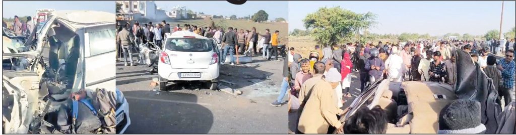 જયારે સેલેરીયો કાર નં. જીજે 11 સીડી 3004 માં બેઠેલા વિનુભાઇ રાજાભાઇ વાળા તથા રાજુભાઇ ડાભોર વાળાના મોત નિપજયાના પ્રાથમિક અહેવાલ મેળવાઇ રહયા છે.