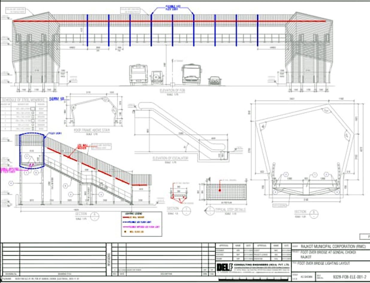 મનપાના બાંધકામ વિભાગમાંથી પ્રાપ્ત થયેલ વિગત મુજબ બીગબઝાર સર્કલ તેમજ 150 ફૂટ રીંગ રોડના અમિન માર્ગ કોર્નર ઉપર બે ફૂટ ઓવરબ્રીજ બનાવવાની કામગીરી શરૂ થઈ ચુકી છે અને હવે ગોંડલ ચોકડીએ બ્રીજ માટે ટેન્ડર પ્રક્રિયા હાથ ધરાઈ છે. તેવી જ રીતે 48 રાજમાર્ગો પૈકી વધુમાં વધુ પગપાળા લોકોની અવર જવર હોય તેવા માર્ગો તેમજ ત્રિકોણબાગ સર્કલ સહિતના અમુક સતત ટ્રાફિકથી ધમધમતા સર્કલો ઉપર પણ ભવિષ્યમાં ફૂટ ઓવરબ્રીજ બનાવવામાં આવે તે તરફ કાર્યવાહી શરૂ કરવામાં આવી છે. ત્રણ ફૂટ ઓવરબ્રીજની ટેન્ડર સહિતની પ્રક્રિયા પૂર્ણ થયા બાદ આગામી દિવસોમાં વધુ રાજમાર્ગો તેમજ સર્કલો ઉપર ફૂટ ઓવરબ્રીજ બનાવવા માટે ટેન્ડર સહિતની કામગીરી શરૂ કરાશે.