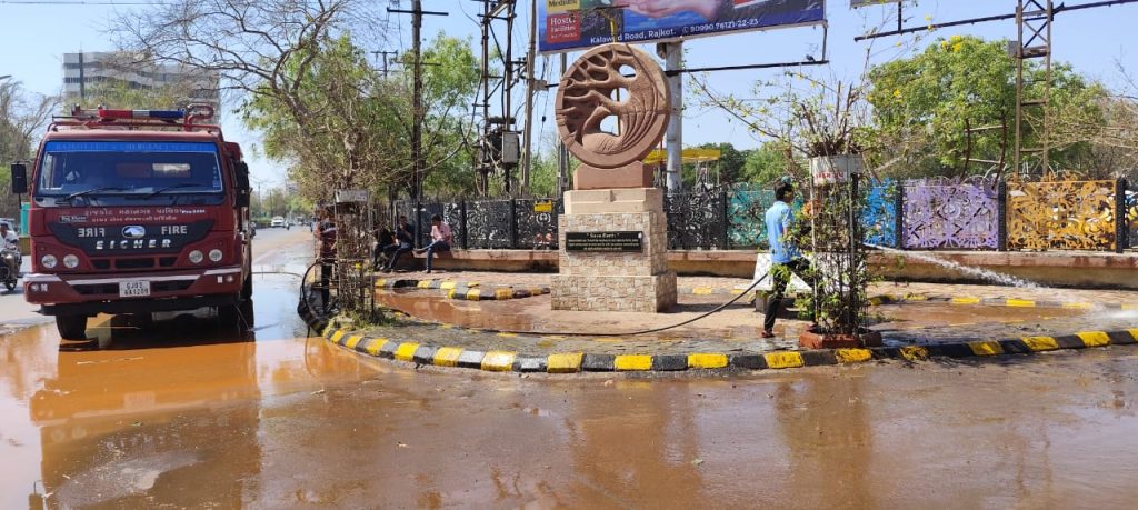 રાજકોટમાં ધુળેટીના તહેવાર દરમિયાન રેસકોર્સ રિંગ રોડ ઉપર ઘેરૈયાઓએ બેફામ કલર ઉડાડતા રોડ પર કલરના થર જામી ગયા હોવાથી વાહનચાલકો લપસીને પડયા હતા. અંતે દેકારો મચી જતા કોર્પોરેશનના જવાબદારો ફાયર ફાઇટર લઇને ઉતરી પડયા હતા અને પાણીનો મારો ચલાવી રસ્તા ક્લિન કર્યા હતા. એક અઠવાડીયા બાદ કોર્પોરેશનનું તંત્ર જાગ્યુ હતું. વોર્ડ ઇન્સ્પેકટરો અને તમામ અધિકારીઓ- પદાધિકારીઓ વારંવાર આ રસ્તા પરથી પસાર થયા હતા છતાં કોઇનું ધ્યાન ન ગયું તે પણ આશ્ર્ચર્યજનક બાબત છે.