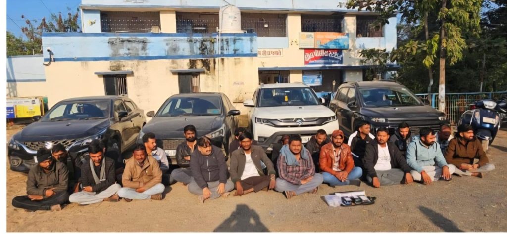 પોલીસે બનાવ ના સ્થળેથી જુગાર રમી રહેલા કુલદિપસિંહ ઉર્ફે લકીરાજસિંહ કિશોરસિંહ ઝાલા ( રહે,જડેશ્વર સોસાયટી ધ્રાંગધ્રા જી.સુરેન્દ્રનગર ) મનસુખભાઈ રણછોડભાઇ પરમાર ( રહે.આંબેડકર નગર-1, સુરેન્દ્રનગર ) વીશાલભાઇ પ્રવિણભાઇ રાબા(ગઢવી) ( રહે.કુતારપરા ધ્રાંગધ્રા જી. સુરેન્દ્રનગર )., રહીમ ઉર્ફે બાબો સલીમભાઈ મોવર ( રહે.ટાવર પાસે પોસ્ટ ઓફીસ પાછળ શેરી સુરેન્દ્રનગર ) આદીલભાઇ અબ્દુલભાઇ શેખ ( રહે.વાવડી રોડ ક્રીષ્ના પાર્ક-02 મોરબી, ) , પ્રકાશભાઈ નરભેરામભાઈ ભુત ( રહે.અવની ચોકડી સંકલ એપાર્ટમેન્ટ મોરબી) ,સુલેમાનભાઈ યુનુસભાઈ મોવર (રહે, પોસ્ટ ઓફીસ પાછળ, સુરેન્દ્રનગર ) જીગ્નેશભાઈ દિલીપભાઇ સિંધવ ( રહે.આંબેદકર નગર ધ્રાંગધ્રા ત જી.સુરેન્દ્રન ) , દિગ્વીજયસિંહ ઉર્ફે દિગભા દિલીપસિંહ પરમાર ( રહે.ઘાટ દરવાજાની અંદર, ધ્રાંગધ્રા જી.સુરેન્દ્રનગર ) ચેતન ગંગારામભાઈ તન્ના ( રહે પટેલ પાર્ક શેરી નં.10 તથા સિધિવિનાયક શેરી નં.01, જામનગર ) માનાભાઇ ઉર્ફે મુન્નો ભાલુભાઈ મેવાડા ( રહે,સોલડી ગામ તા.ધ્રાંગધ્રા જી.સુરેન્દ્રનગર ) , મેહુલભાઈ ત્રીભુવનભાઈ રાઠોડ ( રહે.જુની ખરાવાડ રોડ,ધ્રાંગધ્રા જી.સુરેન્દ્રનગર ) દાઉદભાઈ હુશેનભાઇ મોવર ( રહે.જીન પ્લોટ 9/28 ક્લબ રોડ,ધ્રાંગધ્રા જી.સુરેન્દ્રનગર )., નંદલાલ ઉર્ફે નંદો લખમણભાઇ રૈયાણી( રહે.શનાળા રોડ હાઉસીંગની સામે યાર્ડ પાસે, મોરબી તથા મુળ સજનપર ગામ તા.જી.મોરબી ) ,સુનીલભાઈ જ્ઞાનચંદ લાલવાણી (રહે.દિગ્વીજય પ્લોટ નં.58, હીંગળાજ ચોક, આશાપુરા સોસાયટી, આશાદીપ એપાર્ટમેન્ટ, જામનગર ) , જગદીશભાઇ દેવજીભાઇ સોલંકી (રહે ખેતીવાડીની સામે એરપોર્ટ રોડ, જામનગર ) શાહરુખભાઈ બસીરખાન પઠાણ ( રહે.લાલપાર્ક સીરામિક સીટી ફ્લેટ નં.302, મોરબી તા.જી.મોરબી મુળ-રહે.હિંમતનગર પાલનપુર પાટીયા તા.જી. બનાસકાંઠા), નરોતમભાઈ હરજીભાઇ મકવાણા રહે.શીવપુર ગામ, તા.જી.રાજકોટ ) ,. કેતન મગનભાઇ ચૌહાણ ( રહે.આંબેડકર નગર ધ્રાંગધ્રા જી.સુરેન્દ્રનગર ), કિશનભાઈ દિલીપભાઈ કાનાબાર ( રહે.રણછોડ નગર જલારામ પાર્ક સેન્ટ મેરી સ્કુલની બાજુમા, મોરબી ) અને હૈતલબેન દિપકભાઈ રાઠોડ ( રહે. કનૈયા ચોક જીવનનગર 3 , રાજકોટ ) ની અટકાયત.કરી હતી. જ્યારે રાજેશભાઈ દેવદાનભાઈ કેશુર (ધ્રોલ ) વિપુલ ઉર્ફે ભુરી મગનભાઇ કેશુર અને કાન્તીલાલ ઉર્ફે કાનો દામજીભાઇ કોટડીયા( રહે. લતીપર ગામ તા.ધ્રોલ) નાસી ગયા હોય પોલીસ તેને શોધી રહી છે.