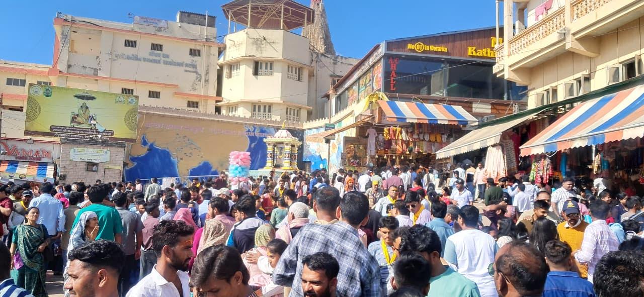 ગઈકાલે મકરસંક્રાન્તિના પાવન પર્વે દાન અને પૂજાનું વિશેષ મહત્ત્વ હોય યાત્રાધામ દ્વારકાના દ્વારકાધીશ જગતમંદિરે લાખો ભાવિકો શ્રીજીના દર્શનાર્થે ઉમટયા હતા. વહેલી સવારથી જ દ્વારકાધીશ મંદિર પરિસરમાં ભાવિકોની ભારે ભીડ જોવા મળી હતી. સૂત્રોમાંથી મળતી માહિતી અનુસાર ગઈકાલે એક જ દિવસમાં એક લાખ વીસ હજારથી વધુ ભાવિકોએ ઠાકોરજીના દર્શનનો લાભ લીધો હતો. વારાદાર પૂજારી દ્વારા દ્વારકાધીશ રાજાધિરાજને પતંગો સાથેનો વિશેષ શૃંગાર યોજવામાં આવ્યો હતો.