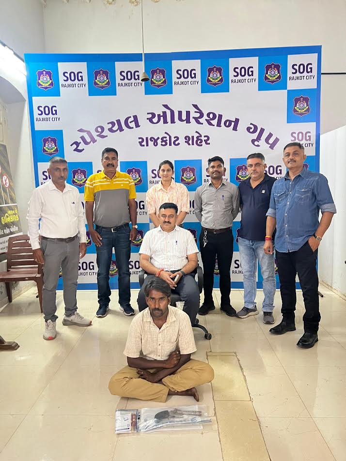 સહીતની પુછતાછ માટે રિમાન્ડની માંગ સાથે કોર્ટ હવાલે કરવાની કાર્યવાહી કરી છે.ડીસીપી ક્રાઇમ બ્રાન્ચ જગદીશ બાંગરવા તથા એસીપી ક્રાઇમ ભરત બી.બસીયાની સૂચના અંતર્ગત એસઓજી પીઆઇ એસ.એમ.જાડેજાના માર્ગદર્શન હેઠળ પીએસઆઇ એસ.બી.ઘાસુરા, અમિતકુમાર ટુંડીયા, કિશોરભાઇ ઘુઘલ,ભાગ્યશ્રીબા અને રવિરાજભાઈ ધગલે આ કાર્યવાહી કરી હતી.આ શખ્સ અગાઉ બી ડિવિઝન પોલીસમાં એક ગુનામાં પકડાયો હતો.