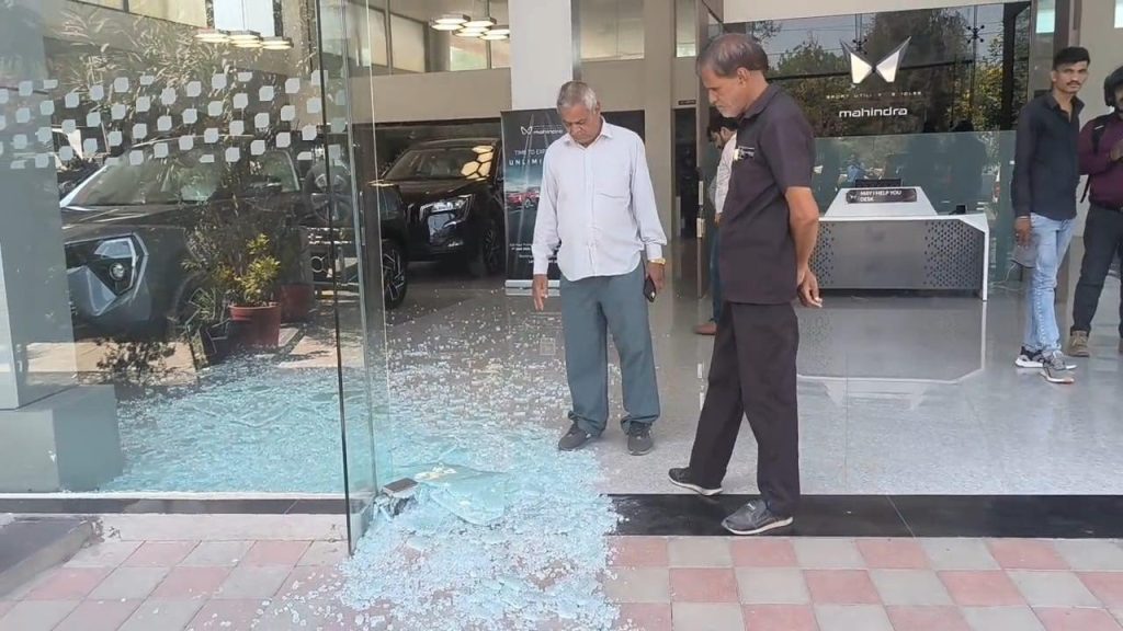જામનગર નજીક હાપા વિસ્તારમાં આવેલા મહિન્દ્રા કંપનીના કારના શોરૂૂમમાં ગઈકાલે રાત્રે 10.00 વાગ્યે કાર ખરીદવા આવેલા ખંભાળિયા પંથકના બે શખ્સોએ તોડફોડ કરી નાખ્યા પછી પોલીસ દ્વારા બંનેની અટકાયત કરી લેવામાં આવી છે.