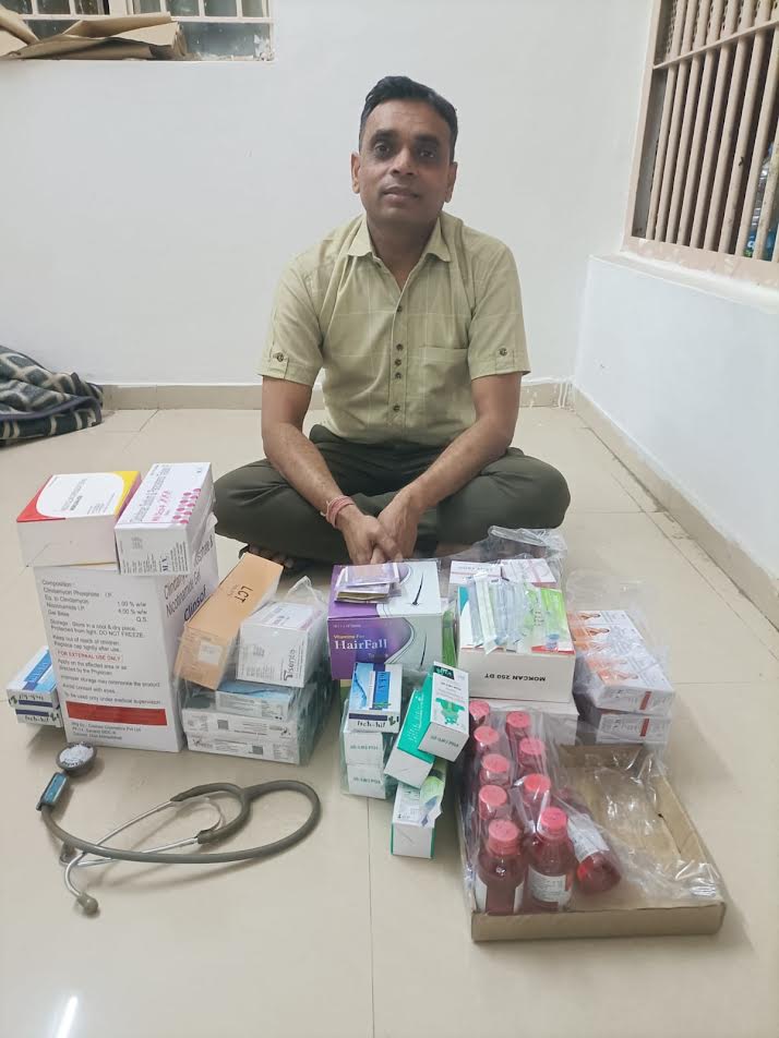 તે દરમ્યાન હેડ કોન્સ્ટેબલ નૈમીષભાઇ મહેતા , કોન્સ્ટેબલ વિપુલભાઇ ગોહિલ અને રણજીતભાઇ ધાધલને કોટડાસાંગાણીના રાજપરા ગામે એક શખ્સ મેડિકલ ડીગ્રી વગર લોકોના આરોગ્ય સાથે ચેડા કરતો હોવાની મળેલ ચોક્કસ બાતમીના આધારે ટીમે દરોડો પાડી ભાવેશ રમેશ કોઠીયા (રહે.રાજપરા ગામ કોટડાસાંગાણી) ને પકડી પાડી તેની પાસેથી ક્લિનિકમાં રાખેલ અલગ અલગ પ્રકારની એલોપેથીક દવાઓનો મળી કુલ રૂૂમ2,865 નો મુદામાલ કબ્જે કરી કોટડાસાંગાણી પોલીસ મથકમાં ગુનો દાખલ કરેલ હતો.