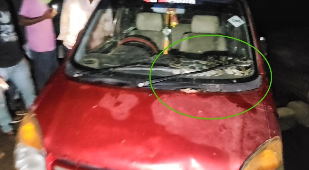ભાણવડ તાબેના મોટા કાલાવડ ગામે ગઈકાલે રાત્રિના સમયે એક મોટરકારના માલિકે પોતાની કારનો દરવાજો ખોલતા જ કારના ડેશબોર્ડ પર નવેક ફૂટ જેટલો લાંબો અજગર જોવા મળતા તેઓ ગભરાઈ ગયા હતા.આ કારના માલિકે સમય સૂચકતા વાપરી અને કારની બહાર નીકળી દરવાજો બંધ કરી દીધો હતો અને બાદમાં ભાણવડના રેસ્ક્યુઅર અશોકભાઈ ભટ્ટને જાણ કરી હતી. જે અંગેની જાણ થતા રેસ્ક્યુ ટીમના સભ્યોએ તુરંત સ્થળ પર પહોંચી જઈ અને નવથી દસ ફૂટ લંબાઈના આ અજગરનું રેસ્ક્યુ સફળતાપૂર્વક કરવામાં આવતા પરિવારજનોએ હાશકારો અનુભવ્યો હતો.
