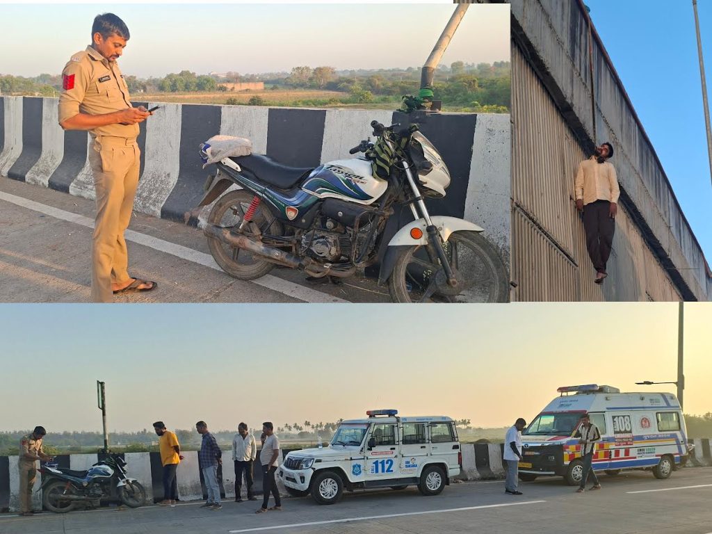 ભાવનગર જિલ્લાના તળાજા પંથકમાં રોયલ ચોકડી થી આગળ નેશનલ હાઇવે ના પુલ પર,ભાવનગર તરફ જતા એક યુવાન પુલ પરના લોખંડના પાઈપ સાથે સાડીબાંધી ગળેફાંસો ખાઈ લટકેલ હાલતમાં હોવાની માહિતી મળતા ઇમરજન્સી પોલીસ વાહન 112 ના હેડ.કો અરવિંદભાઈ ડાભી અને 108 દોડી આવ્યા હતા.લોકો ટોળે વળ્યાહતા.પુલપરથી એક બાઇક નં.જીજે 4 બીસી-7428 મળી આવ્યું હતું.