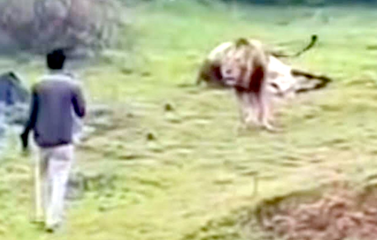 મારણ કરી રહેલ સિંહની નજીક જઈ વીડિયો ઉતાર્યો: વીડિયો ઉતારવાની લ્હાયમા યુવક હુમલાનો ભોગ બનતા રહી ગયો