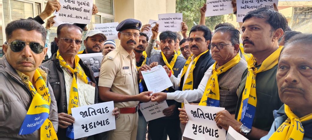 આમ આદમી પાર્ટીના શહેર પ્રમુખ રાજેન્દ્રસિંહ સોઢાની આગેવાની હેઠળ પાર્ટીના કાર્યકરોએ જિલ્લા પોલીસ કચેરીએ પહોંચી આવેદન આપતાં જણાવ્યું હતું કે, ગૃહમંત્રી જેવા ઉચ્ચ પદ પર બેઠેલા વ્યક્તિ દ્વારા આ પ્રકારની ટિપ્પણી કરવી એ દેશના સંવિધાનના નિર્માતાનું અપમાન છે.