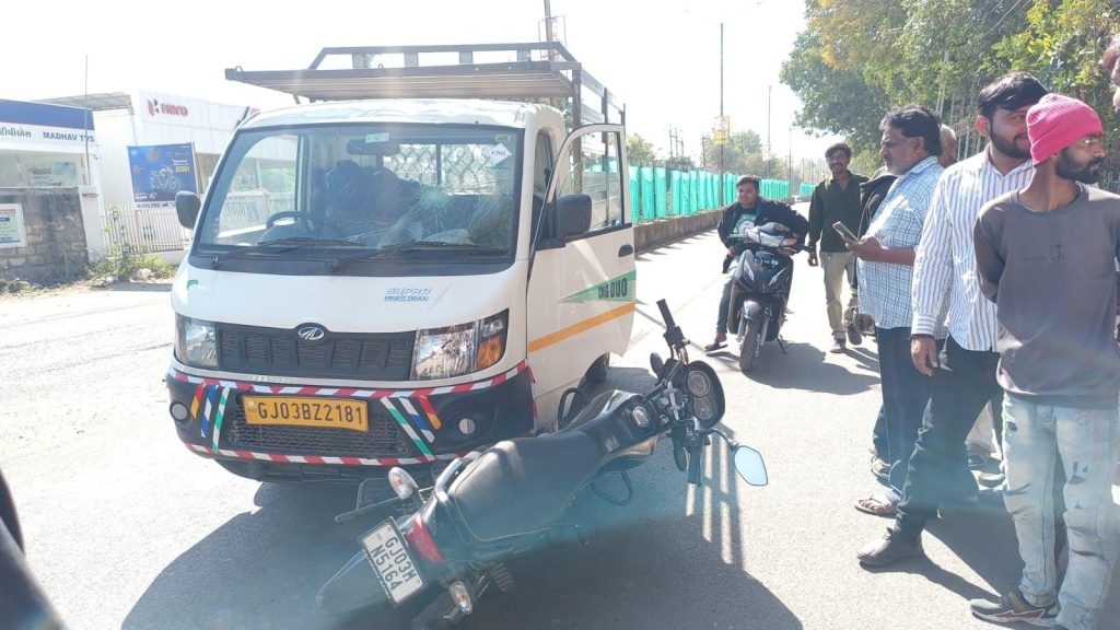 જસદણ શહેરમાં વીંછિયા રોડ પર ચામુંડા માતાજીના મઢ પાસેથી પસાર થતા બાઈક ચાલક કોઈ કારણોસર સામેથી આવતા છોટાહાથી સાથે ટકરાઈ પડ્યા હતા અને આ ટક્કર એટલી જોરદાર હતી કે બન્ને વાહનોને બ્રેક લાગે તે પહેલાં બાઈક ચાલક નીચે પટકાયા હતા અને તેમને ફ્રેક્ચર જેવી ગંભીર ઈજા પહોંચી હતી અને તેમને તાબડતોબ સારવાર માટે લઈ જવામાં આવ્યા હતા.