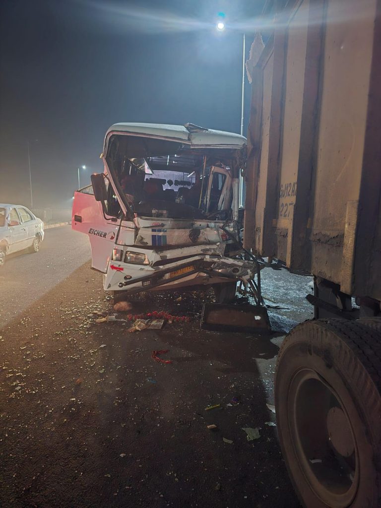 બનાવની પ્રાપ્ત વિગતો મુજબ જેતલસર ઓવર બ્રીઝ પર ગઈ કાલે રાત્રે આશરે 9 વાગ્યે GJ 11 TT 5562 નંબરની માતૃકૃપા ખાનગી ટ્રાવેલ્સ અને ટ્રક વચ્ચે ભયંકર અકસ્માત સર્જાયો હતો,ડ્રાઈવરે ઓવર ટેક કરતી વખતે સ્ટેરીંગ પરથી કાબુ ગુમાવતા ભયંકર અકસ્માત સર્જાયો હતો.અકસ્માત સમયે બસમાં સવાર આશરે 13 જેટલાં પેસેન્જરોને ગંભીર ઈજાઓ પહોંચી હતી,ઘટના બનતાની સાથેજ જેતપુર તાલુકા પોલીસ મથકના પી. આઈ. હેરમાં સહીતનો સ્ટાફ ઘટના સ્થળે પહોંચ્યો અને ટ્રાફિક ક્લિયર કરાવી ઈજાગ્રસ્તોને સારવાર અર્થે જેતપુર સીવીલ હોસ્પિટલ ખસેડવામાં આવ્યા હતા જેમાં અંદાજે 5 જેટલાં લોકોને ગંભીર ઈજાઓ પહોંચતા તેને પ્રાથમિક સારવાર જેતપુર સીવીલ બાદ વધુ સારવાર માટે જૂનાગઢ સીવીલ હોસ્પિટલ ખાતે ખસેડવામાં આવ્યા હતા.બસમાં નયનભાઈ ચાવડા, સંદીપ વાઘેલા, આરતીબેન, જીજ્ઞેશ કનૈયા, ઇશિકા, બીબીબેન, અહલાદ નોઇડા,મોઇન આસિફ ભાઈ,અલી ઇસ્માઇલભાઈ, તસ્લીમ બેન, સોફિયા બેન,માધવી બેન અને ફિરદોષ નામના લોકો સવાર હતા જેતપુર તાલુકા પોલીસના પી. આઈ હેરમાં સહિતે ઘટના સ્થળે પહોંચી અકસ્માતનુ સચોટ કારણ જાણવા અને ભાગેડુ ટ્રક ડ્રાઈવરને ઝડપી પાડવા ચક્રો ગતિમાન કર્યા હતા.