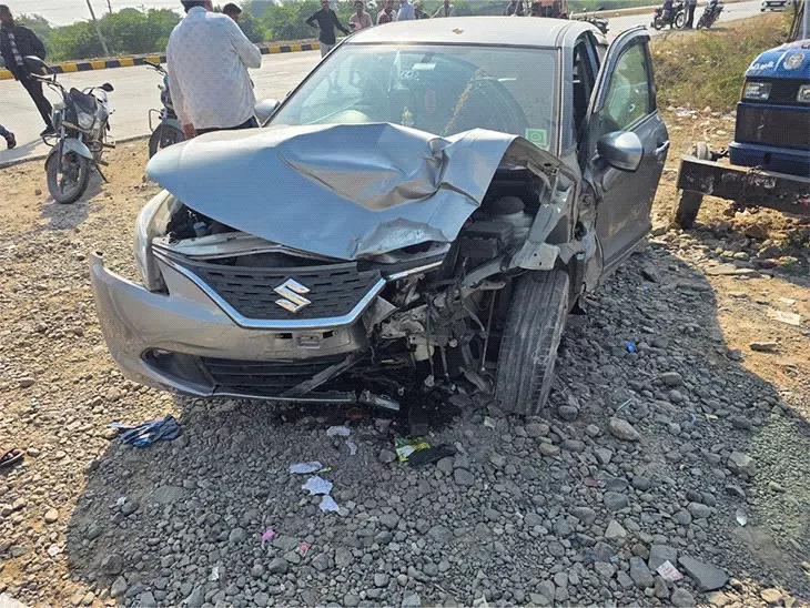 બેકાબૂ કાર બાઇકને ટકકર મારી ટ્રેકટરમાં ઘુસી ગઇ , કારનો ચાલક મુંબઇનો વતની : ઘટનાના સીસીટીવી વાયરલ