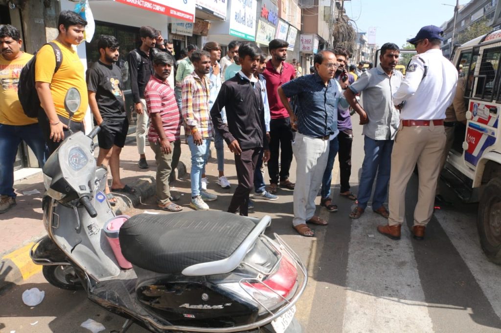 ત્યારબાદ રસ્તા પર દોડતી સીટી બસનાં ચાલકો દ્વારા અવાર નવાર અકસ્માત સર્જાતા હોવાની ઘટનાઓ સામે આવતી રહે છે ત્યારે આજે સવારે ભુતખાના ચોક પાસે સીટી બસ અને એકટીવા વચ્ચે અકસ્માત સર્જાયો હતો. અકસ્માતની ઘટના બાદ ટ્રાફીક જામ થઇ જતા એકટીવાને રસ્તા પર પડેલુ જોઇ આજુબાજુના પ થી 6 લોકો દોડી આવ્યા હતા અને બસનાં ચાલક સાથે માથાકુટ કરે તે પહેલા પોલીસ ઘટના સ્થળે પહોંચી ગઇ હતી અને મામલો થાળે પાડયો હતો.