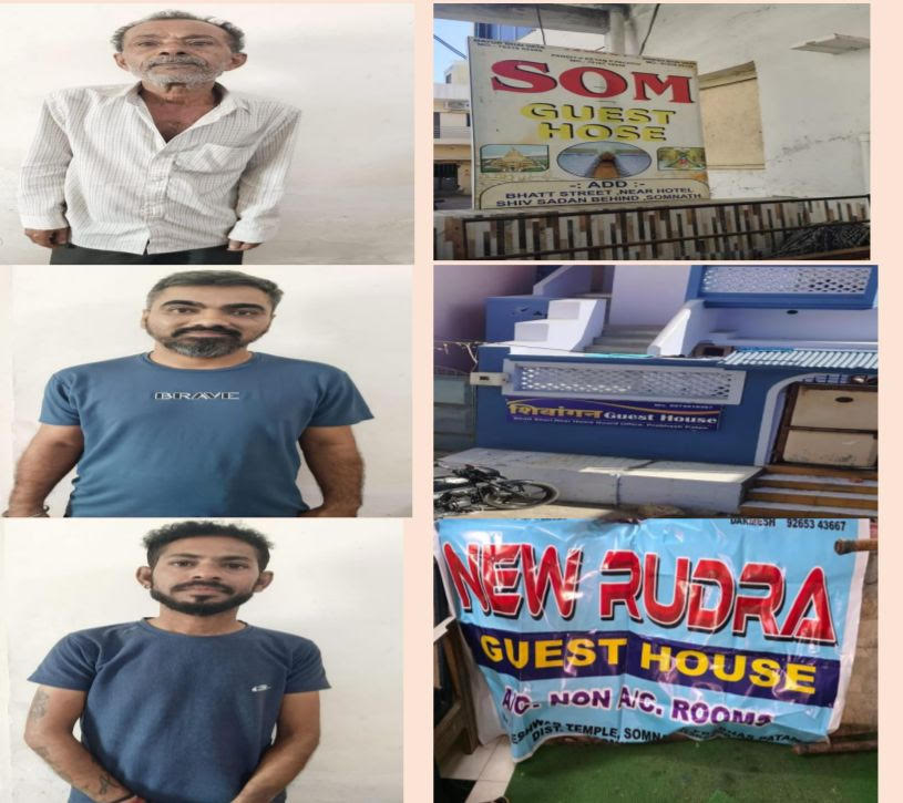 ગીરસોમનાથ જીલ્લા ખાતે દેશ વિદેશમાંથી યાત્રાળુઓ/લોકો સાસણ/સોમનાથ વિગેરે સ્થળે ફરવા /દર્શનાર્થે આવતા હોય, કાયદો અને વ્યવસ્થાની પરીસ્થિતી જળવાઇ રહે તેમજ અગત્યના ઇનપુટસ બાબતે મહત્વની માહિતી મળી રહે તેમજ આંતકવાદી ઘટનાઓને અટકાવવા પરીણામલક્ષી માહિતી તમામ રીસોર્ટ/હોટલો/ફાર્મ હાઉસો/ગેસ્ટહાઉસો પાસેથી તાત્કાલીક મળી રહે તે માટે આવા રીસોર્ટ/ ફાર્મહાઉસ/હોટલ ગેસ્ટહાઉસમાં રહેવા માટે આવતા વ્યક્તિઓના આધાર, પુરાવા વાહન વિગેરે તમામ બાબતોની એન્ટ્રી પથિક સોફટવેરમાં કરવા માટે જીલ્લા મેજી.સા. ગીરસોમનાથ તરફથી જાહેરનામું બહાર પાડવામાં આવેલ હોય તેની કડક અમલવારી કરાવવા માટે ઉચ્ચ અધિકારીઓની સુચનાના અનુસંધાને ગીર સોમનાથ જિલ્લા પોલીસ અધિક્ષક જયદિપસિંહ જાડેજાના માર્ગદર્શન અનુસાર તા.09/12/2025 ના એસ.ઓ.જી. ઇન્ચાર્જ પોલીસ ઇન્સ્પેકટર ડી.એમ. કાગડાનની રાહબરી હેઠળ એસ.ઓ.જી. શાખાના દેવદાનભાઈ એમ કુંભરવાડીયા, મેરામણભાઈ શામળા, ભુપતગીરી મેઘનાથી એ.એસ.આઇ. તથા વિપુલભાઇ ટીટીયા પો.હેડ કોન્સ. તથા મહાવિરસિંહ જાડેજા તથા કૈલાશસિંહ બારડ પો.કોન્સ.એ રીતેના પોલીસ સ્ટાફ પ્રભાસ પાટણ વિસ્તારમાં હોટલ/ગેસ્ટહાઉસ ચેકીંગની કામગીરીમાં હતા દરમ્યાન નીચે જણાવેલ વિગત મુજબના હોટલ/ગેસ્ટ હાઉસના સંચાલકોએ પોતાની હોટલો/ગેસ્ટ હાઉસમાં રહેવા માટે આવતા વ્યક્તિઓની પથીક સોફટવેરમાં એન્ટ્રીઓ કર્યા વગર રૂૂમ રહેવા માટે આપેલ હોય તેમના વિરુધ્ધ પ્રભાસ પાટણ પો.સ્ટે. જાહેરનામાં ભંગ મુજબ અલગ અલગ ગુન્હાઓ રજી. કરાવેલ. જેમા દિનેશભાઇ સવજીભાઈ વાજાં પ્રભાસપાટણ, દિપેશભાઈ મનહરલાલ ચૈનાણી પ્રભાસપાટણ,અને મયુરભાઈ દિનેશભાઇ વાજા પ્રભાસપાટણ આ હોટલ/ગેસ્ટ હાઉસ માલીકો/સંચાલકોએ પોતાની હોટલ/ગેસ્ટહાઉસમાં આવતા ઉતારૂૂઓની તથા જરૂૂરી ડોકયુમેન્ટની પથિક નામના સોફ્ટવેરમાં એન્ટ્રી નહી કરી જીલ્લા મેજી.ગીર સોમનાથના જાહેરનામાનો ભંગ કરેલ છે તે બદલ પ્રભાસપાટણ પોલીસ દ્વારા કડક કાર્યવાહી કરવામાં આવેલ છે