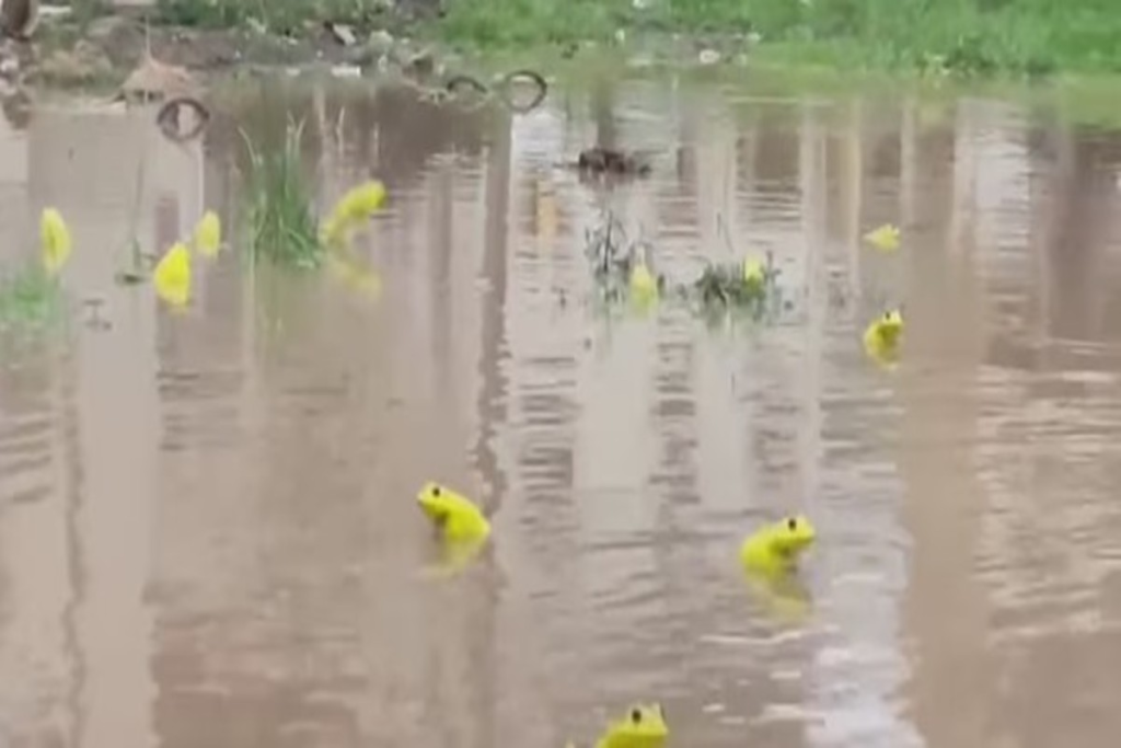 ભરૂચના શેરપૂરા વિસ્તારમાં વરસાદ બાદ અનેક દેડકા જોવા મળ્યા, જેનો રંગ સંપૂર્ણ રીતે પીળો હતો. આ દૃશ્ય જોઇને સ્થાનિક રહેવાસીઓ આશ્ચર્યમાં પડી ગયા અને ઘણાઓએ તેમના મોબાઇલમાં તેનો વીડિયો રેકોર્ડ કરી સોશિયલ મીડિયા પર શેર કર્યો. વીડિયો વાયરલ થતાં સમગ્ર ગુજરાતમાં તે ચર્ચાનો વિષય બની ગયો છે. વિડિયો સામે આવ્યા બાદ ઘણા સોશિયલ મીડિયા યૂઝર્સે જણાવ્યું કે આવા દેડકા દક્ષિણ અમેરિકામાં જોવા મળતી ગોલ્ડ પોઈઝન ફોગ પ્રજાતી જેવાં દેખાતા હતા.