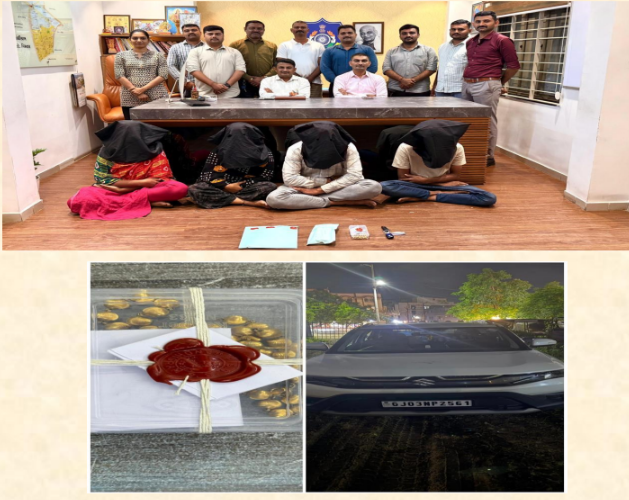 આ કામગીરી ગાંધીગ્રામના પીઆઇ એસ.આર. મેઘાણી, પો.સબ.ઇન્સ. એમ.વી.જાડેજા, વી.ડી.રાવલીયા,રવીભાઇ ગઢવી, રોહિતદાન ગઢવી,ભવદીપસિંહ ગોહિલ, શબ્બીરખાન મલેક,પ્રદિપભાઇ ડાંગર,મુકેશભાઇ સબાડ,રઘુવીરસિંહ જાડેજા, ભરતભાઇ મકવાણા, રીનાબેન પરમાર, મિરાલીબેન કપુરીયા, પ્રેક્ષાબેન આહિર અને એલસીબી ઝોન-02ના પીએસઆઇ આર.એચ.ઝાલા અને ટીમેં રાહુલ ધનજીભાઈ ચોહાણ (ઉ.વ. 22, રહે. નવા થોરાળા શેરી નં.7-8) શાહિલ ભાનુભાઈ વાઘેલા (ઉ.વ. 24, રહે. મનહરપુર-1, જામનગર રોડ), સેનીલા ઉર્ફે હેતલ અનવરભાઈ ઠેબા અને ચાંદની ઉર્ફે ચાર્મી રાજેશભાઈ પરમાર (ઉ.વ. 25, રહે બન્ન- ડીવાઇન સિટી પાસે, ભાડેથી, માધાપર ગામ પાસે)ને ઝડપી લઈ પૂછતાછ શરૂૂ કરી હતી.