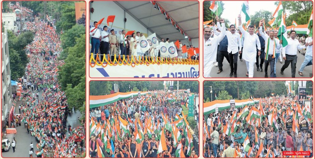 આ તિરંગા યાત્રામાં વ્યવસાયિક એસો., વિવિધ ચેમ્બર્સ, ઇન્ડસ્ટ્રીયલ એસો., વિવિધ સમાજ, બિલ્ડર્સ, આર્કીટેકટ, ક્ધસલ્ટન્ટન્ટ એસો., એન્જીનિયરીંગ એસો., તાબા હેઠળના કોન્ટ્રાકટરોના કર્મચારીઓ, ધાર્મિક સંગઠનો, એનજીઓ, સખી મંડળો, રમત ગમતની સંસ્થાઓ, એનએસએસ, એનસીસી, આઈએમએ, કેમિસ્ટ અને ડ્રગીસ્ટ એસો., હોટેલ, રેસ્ટોરન્ટ, ફૂડ વેન્ડર, નગર પ્રાથમિક શિક્ષણ સમિતિની શાળાઓ, મનપા સંચાલિત હાઈસ્કૂલો, યુનિવર્સીટીના વિદ્યાર્થીઓ, સ્વનિર્ભર શાળા સંચાલક મંડળ હેઠળની ખાનગી શાળાઓ તથા ટ્રસ્ટ સંચાલિત શાળાઓના વિદ્યાર્થીઓ, તેમજ બહોળી સંખ્યામાં શહેરીજનો ઉત્સાહભેર જોડાયા હતા.