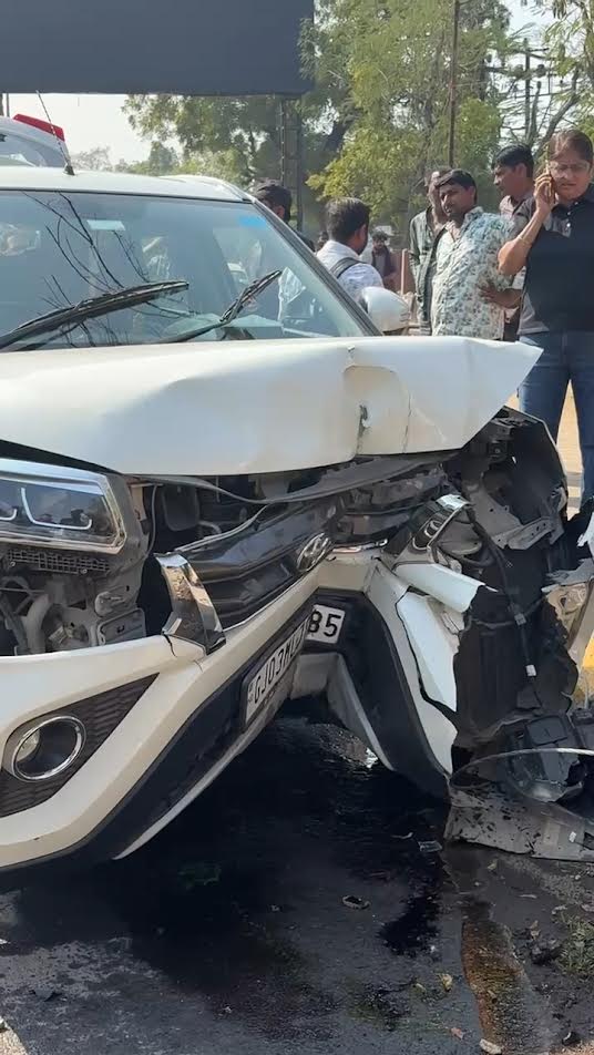 બહુમાળી ભવન પાસે બેકાબુ કારે અકસ્માત સર્જ્યો, વીજપોલમાં નુકસાન