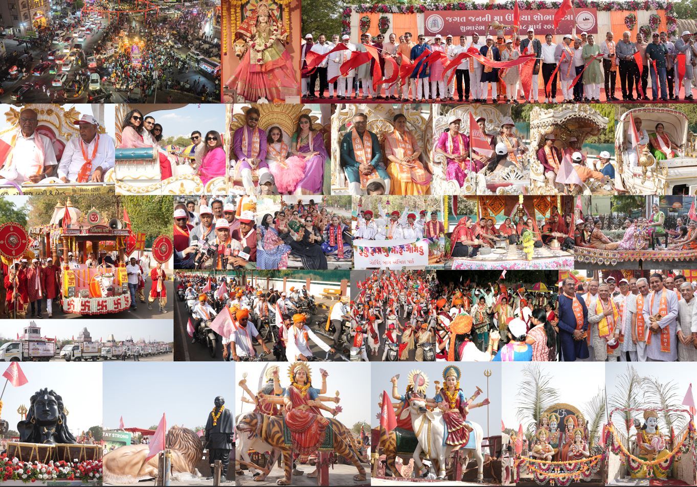 સર્વેનું મંગલ કરનારી, શિવપ્રિયા, નંદિ પર સવાર થઇ જગત જનની મા ઉમિયા શાહી રથમાં બિરાજમાન થઇ રાજકોટના રાજમાર્ગો પર ગઇકાલે સૌ નગરજનો ને આર્શીવાદ આપવા નગરચર્યા એ ભ્રમણ કર્યુ હતુ. મા ઉમિયાના આ અલૌકીક સ્વરૂૂપના દર્શન કરવા રાજકોટવાસીઓની ઠેર-ઠેર ભીડ જામી હતી. મા ના જયઘોષ સાથે પાટીદારો શોભાયાત્રામાં જોડાયા હતા. કડવા પાટીદાર સમાજ જ નહી પરંતુ, સર્વે સમાજના આગેવાનોએ શોભાયાત્રા દરમ્યાન સ્વાગત પોઇન્ટ પર મા ઉમિયાના વધામણા કરી આરતી અને દર્શનનો લ્હાવો લીધો હતો. આ ભવ્યાતિભવ્ય શોભાયાત્રા નું બપોરે 4 કલાકે રમેશ પારેખ રંગમંચ રેસકોર્ષ ખાતેથી શુભારંભ કરવામાં આવ્યો હતો. ઉમિયાધામ સિદસરના પ્રમુખ મૌલેશભાઈ ઉકાણી, મુખ્ય દાતા જીવનભાઈ ગોવાણી પરિવાર, ઉપપ્રમુખ ચિમનભાઈ શાપરીયા, જગદીશભાઈ કોટડીયા, મંત્રી જયેશભાઈ પટેલ, ટ્રસ્ટીઓ રમેશભાઈ રાણીપા, રસીકભાઈ ફળદુ, ભાવેશભાઈ ફળદુ, સંગઠન સમિતિ સિદસરના પ્રમુખ કૌશીકભાઈ રાબડીયાના હસ્તે શોભાયાત્રાનું પ્રસ્થાન કરવામાં આવ્યુ હતુ. શોભાયાત્રા બહુમાળી ભવન, સરદાર પટેલ સ્ટેચ્યુ, જીલ્લા પંચાયત ચોક, કિશાનપરા ચોક, મહિલા કોલેજ સર્કલ, બાનલેબ ઓફીસ, અક્ષરમાર્ગ, અમીનમાર્ગ, 150 ફુટ રીંગ રોડ, નાનામૌવા સર્કલ, નાનમૌવા મેઇન રોડ, ભીમનગર ચોક સર્કલ થઇ સ્પીડવેલ ચોક શ્રીનાથધામ હવેલી ખાતે પહોંચી હતી. સમગ્ર શોભાયાત્રા દરમ્યાન રાજકોટવાસીઓ મા ના દર્શનનો લ્હાવો લઈ સહભાગી બન્યા હતા.