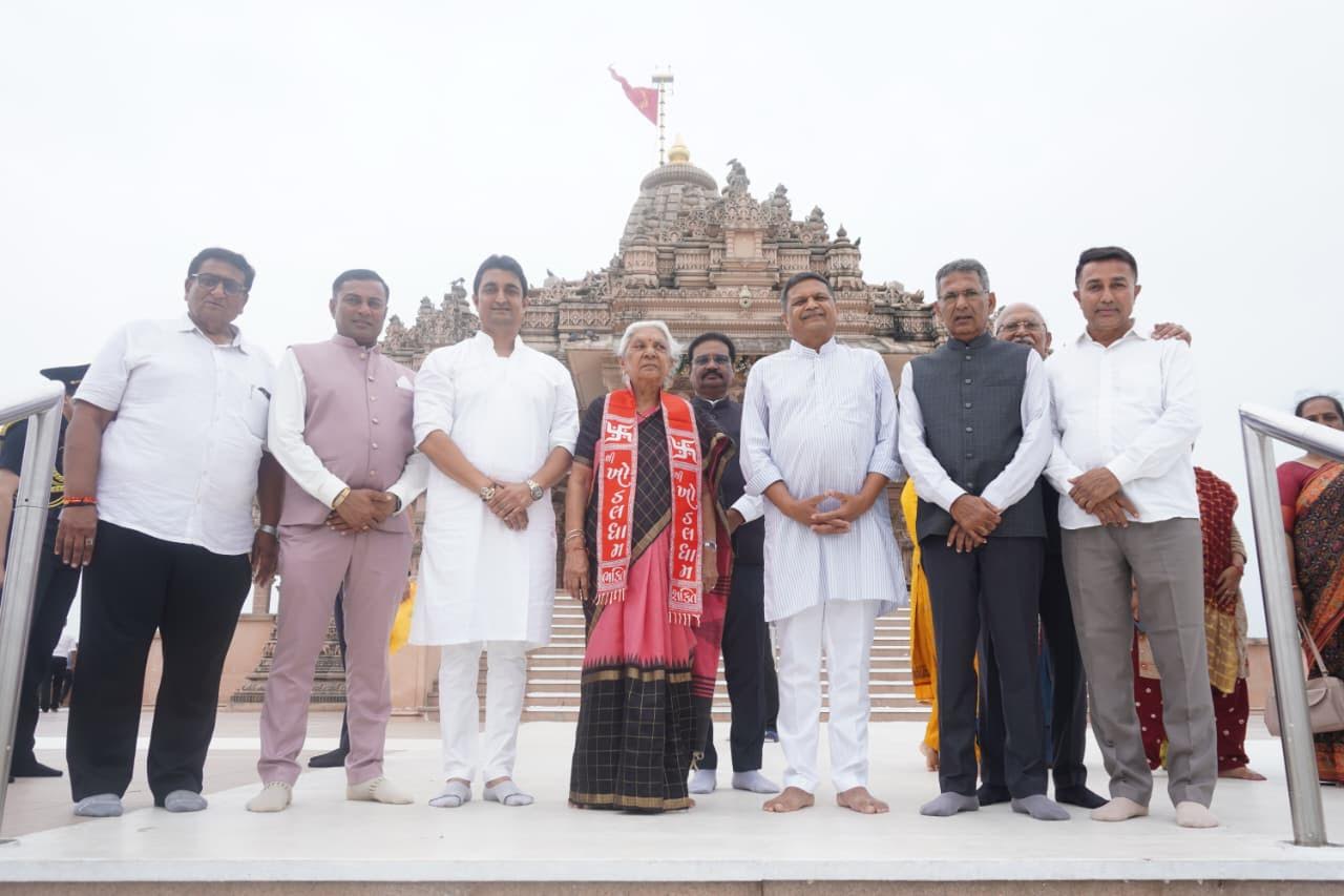 નવલા નોરતા ચાલી રહ્યા છે ત્યારે ઉત્તર પ્રદેશના મહામહિમ રાજ્યપાલ અને ગુજરાતના પૂર્વ મુખ્યમંત્રી આનંદીબેન પટેલે 28 સપ્ટેમ્બર ને શનિવારના રોજ સંત-શૂરાની ભૂમિ સૌરાષ્ટ્રના સુપ્રસિદ્ધ યાત્રાધામ કાગવડ સ્થિત શ્રી ખોડલધામ મંદિરની મુલાકાત લીધી હતી. તેમની સાથે તેમના દીકરી અને ટ્રસ્ટી અનારબેન પટેલ પણ જોડાયા હતા. સાથે જ કેન્દ્રીય મંત્રી મનસુખભાઈ માંડવીયાએ પણ આજરોજ ખોડલધામ મંદિરેમા ખોડલના દર્શન કર્યા હતા. આ પ્રસંગે ખોડલધામ ટ્રસ્ટ-કાગવડના ચેરમેન નરેશભાઈ પટેલ સહિતના આગેવાનોએ તેમને ઉષ્માભેર આવકાર્યા હતા.