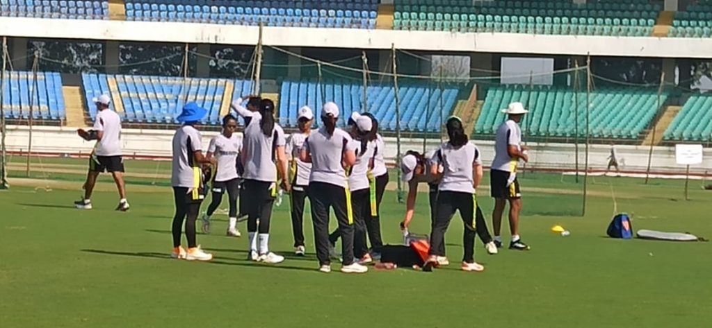 રાજકોટના ખંઢેરીમાં નિરંજન શાહ ક્રિકેટ સ્ટેડિયમ ખાતે ભારત અને આયર્લેન્ડની મહિલા ક્રિકેટ ટીમ વચ્ચે ત્રણ વન-ડેની ચેમ્પિયનશિપ રમાવાની છે. સોમવારે બપોરે સાંજે આયર્લેન્ડની ટીમ રાજકોટ આવી પહોંચી હતી અને મોડી સાંજે ભારતની ટીમનું પણ આગમન થયું હતું. ભારતીય ટીમના ચાર પ્લેયર આજે સવારે આવી પહોચ્યા હતાં. ત્રણ વન-ડેની ચેમ્પિયનશિપનો પ્રથમ મેચ તા.10ના બીજો મેચ તા.12ના અને ત્રીજો મેચ તા.15ના રમાશે. આજે બપોરે બાર વાગ્યે ભારતીય મહિલા ક્રિકેટ ટીમ ખંઢેરી ગ્રાઉન્ડ ખાતે અને બપોરના સેશનમાં બપોરે ત્રણેક વાગ્યે આયર્લેન્ડની ટીમ પ્રેક્ટિસમાં પરસેવો પાડ્યો હતો.