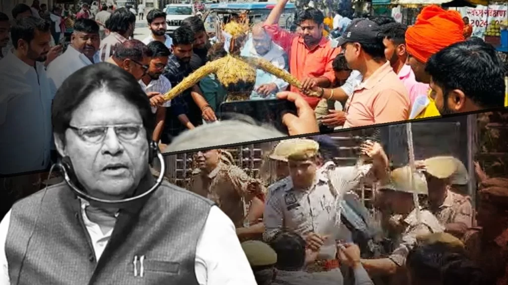 છે. યુપીના આગ્રામાં રામજીલાલ સુમનના ઘરે કરણી સેનાના કાર્યકરોએ હંગામો મચાવ્યો હતો. આ દરમિયાન તેની પોલીસ સાથે ઉગ્ર બોલાચાલી થઈ હતી. જેમાં એક ઈન્સ્પેક્ટર ઘાયલ થયો હતો. કરણી સેનાના લોકો પણ ઘાયલ થયા છે. વાતાવરણ ભારે તંગ બની ગયું છે. કરણી સેનાના કાર્યકરો બુલડોઝર લઈને સુમનના ઘરે પહોંચ્યા હતા. વાહનોમાં તોડફોડ કરી હતી.