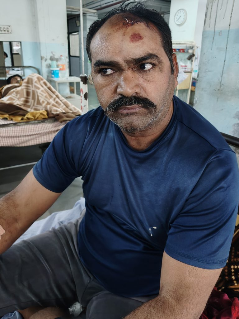 મળતી વિગતો મુજબ લક્ષ્મણ ટાઉનશીપમાં રહેતા નરેન્દ્રસિંહ જુવાનસિંહ રાણા નામના પ1 વર્ષના પ્રૌઢે પોતાની ફરીયાદમાં મિલન ખખ્ખર, દર્શન અને અજાણ્યા શખ્સ વિરૂધ્ધ ફરીયાદ નોંધાવી છે જેમાં નરેન્દ્રસિંહે જણાવ્યુ હતુ કે તેઓ ભુણાવા પાસે આવેલી શકિતમાન કંપનીમાં મશીન ઓપરેટર તરીકે નોકરી કરે છે. ગઇકાલે સાંજના સમયે પોતે લક્ષ્મણ ટાઉનશીપના ગેટ પાસે હતા ત્યારે તેમના ભાણેજ જયદેવસિંહ જાડેજા સાથે મિલન ખખ્ખર સહીત 3 લોકો ઝઘડો કરતા હતા. જેથી તેમને બચાવવા નરેન્દ્રસિંહ વચ્ચે પડતા આરોપીઓએ પથ્થરના ઘા કર્યા હતા જેથી નરેન્દ્રસિંહને માથામાં ઇજા પહોંચી હતી. દેકારો થતા નરેન્દ્રસિંહના પત્ની પ્રફુલાબા છોડાવવા વચ્ચે પડતા તેઓને મોઢા પર પથ્થર વાગતા તેમનો દાંત પડી ગયો હતો. થોડીવાર બાદ આરોપીઓ ત્યાથી ભાગી જતા 108 મારફતે ઘવાયેલા દંપતી સહીત ત્રણેય સિવિલમાં સારવાર અર્થે ખસેડાયા હતા. આ મામલે રાજકોટ તાલુકા પોલીસ મથકના એએસઆઇ સલીમભાઇ માડમે ફરીયાદ નોંધી હતી.