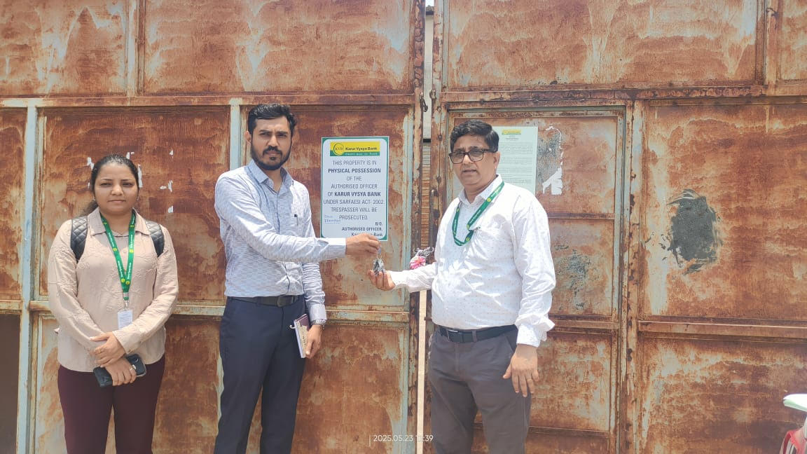 રાજકોટ જિલ્લામાં કરુર વૈશ્ય બેંક દ્વારા ભવાની એન્ટરપ્રાઇઝ, આણંદપર નવાગામની એક મિલકતનો કબ્જો સિક્યોરિટાઇઝેશન એન્ડ રીક્ધસ્ટ્રક્શન ઓફ ફાઇનાન્સિયલ એસેટ્સ એન્ડ એન્ફોર્સમેન્ટ ઓફ સિક્યોરિટી ઇન્ટરેસ્ટ એક્ટ-2002 હેઠળ લેવામાં આવ્યો છે. બેંક દ્વારા આ કાર્યવાહી રૂૂ. 4,46,99,981.08/- (ચાર્જ કરોડ છેતાલીસ લાખ નેવું હજાર નવસો એક્યાસી રૂૂપિયા અને આઠ પૈસા) અને ત્યારબાદના ચડત વ્યાજની વસૂલાત માટે કરવામાં આવી છે, જે 31/05/2019 સુધી બાકી હતા. કરુર વૈશ્ય બેંક દ્વારા આણંદપર નવાગામ સ્થિત ભવાની એન્ટરપ્રાઇઝની મિલકતનો કબજો લેવામાં આવ્યો છે.