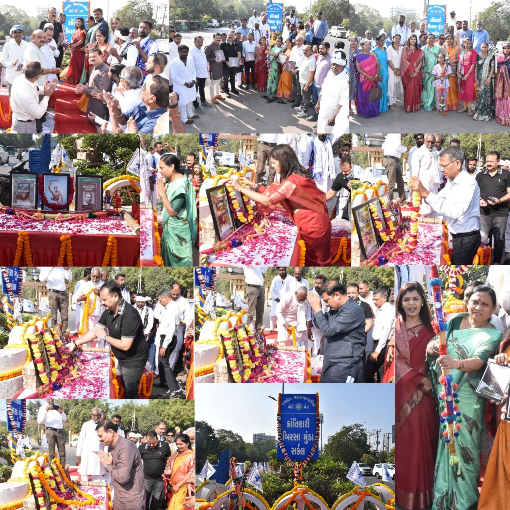જેના અનુસંધાને આજ તા.15/11/2024ના રોજ બિરસા મુંડાજીની 150મી જન્મ જયંતિની ઉજવણી અંતર્ગત વોર્ડ નં.2માં રેસકોર્ષ રિંગ રોડ, બહુમાળીભવન ચોક ખાતે આવેલ સર્કલનું ક્રાંતિકારી બિરસા મુંડા સર્કલ નામકરણ તકતી અનાવરણ કાર્યક્રમ વિધાનસભા-69ના ધારાસભ્ય ડો.દર્શિતા શાહના વરદ્ હસ્તે કરવામાં આવ્યું.આ કાર્યક્રમના અધ્યક્ષ સ્થાને માન.મેયર શ્રીમતી નયનાબેન પેઢડીયા ઉપસ્થિત રહેલ.
