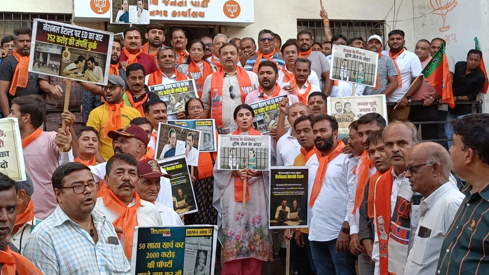 નેશનલ હેરાલ્ડ કેસમાં કોંગ્રેસ ના રાહુલ ગાંધી અને સોનિયા ગાંધી સામે કેસ થતાં કોંગ્રેસ દ્વારા ઇડી સામે વિરોધ પ્રદર્શનનું આયોજન કરાયું છે. ત્યારે તેના વિરોધમાં આજે જામનગરમાં શહેર ભાજપ દ્વારા શહેર ભાજપ કાર્યાલયથી ટાઉન હોલ થઈ લાલ બંગલા સુધી રેલી યોજવામાં આવી હતી. અને ત્યાં રાહુલ ગાંધીના પૂતળાનું દહન કરવામાં આવ્યું હતું તેમજ સૂત્રચાર કરવામાં આવ્યા હતા. આ રેલીમાં વિશાળ સંખ્યામાં ભાજપના આગેવાનો કાર્યકર્તા ઓ પ્લે કાર્ડ સાથે જોડાયા હતા.
