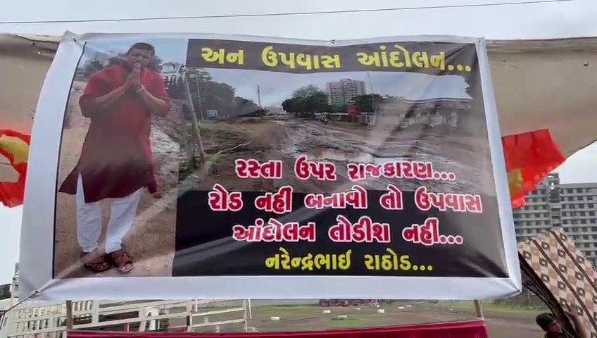 ગુજરાતભરમાં એક જ મુદ્દો ચર્ચાસ્પદ બન્યો છે રાજકારણીઓ હોય કે પ્રજા ફક્તને ફક્ત તુટેલા રોડ રસ્તા અને ખાડાઓ મુદ્દે ચર્ચાઓ થઈ રહી છે. જેમાં તમામ રાજકીય પક્ષો રોટલો સેવકાનો પ્રયાસ કરી રહ્યા છે. તેની સામે પ્રજાના કામો ન થતાં ઠેર ઠેર આંદોલનો અને ચક્કાજામ કરવામાં આવી રહ્યા છે. ત્યારે શાસકપક્ષનું પણ કંઈ ઉપજતુ નથી તેવા આક્ષેપ સાથે કણકોટ વિસ્તારના ભાજપના આગેવાન નરેન્દ્રસિંહ રાઠોડે તુટેલા રોડ રસ્તા મુદ્દે આજે ઉપવાસ આંદોલન પર ઉતરી જતાં ભાજપમાં ધમાસાણ બોલી ગયું છે.