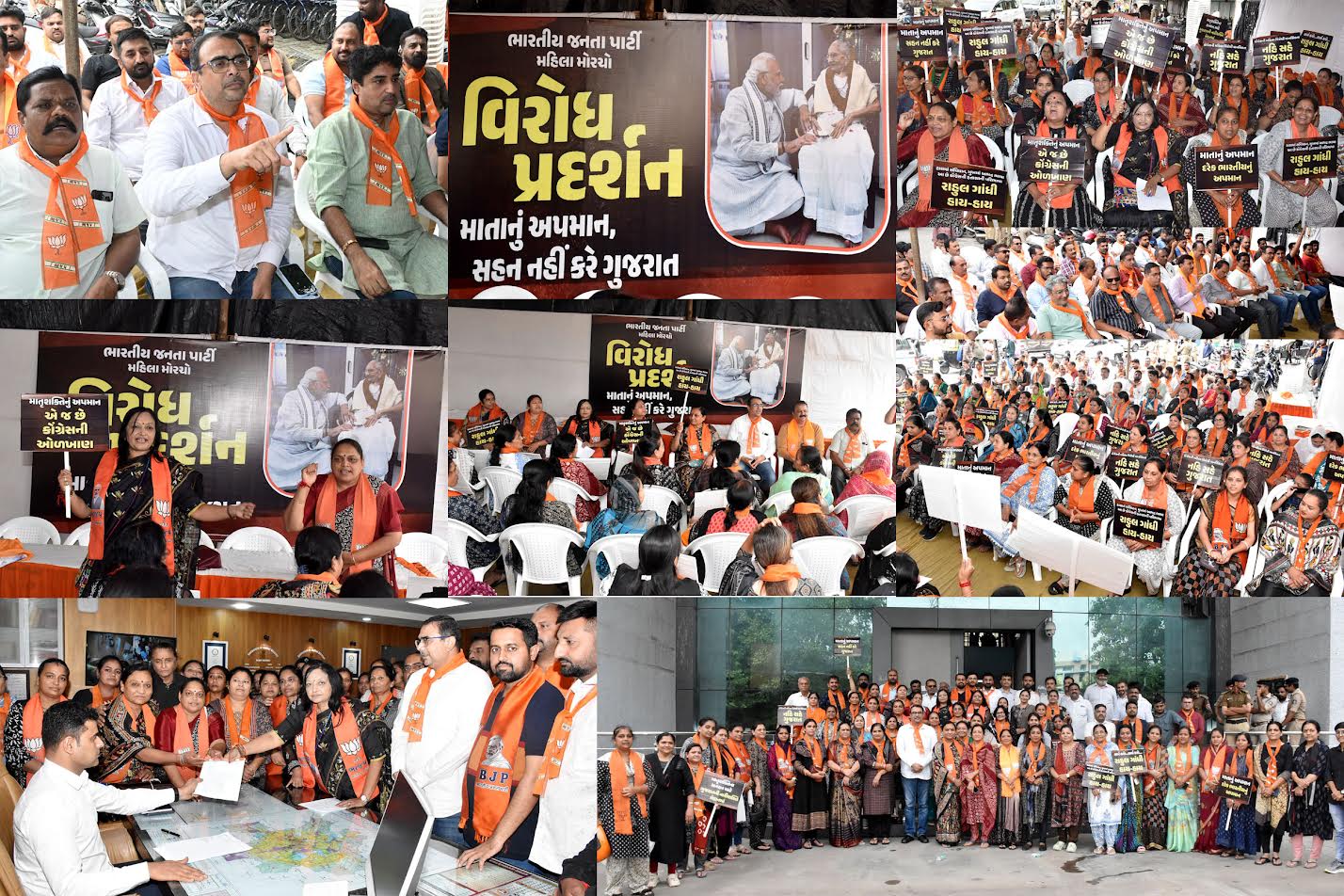 પી.એમ.મોદીના માતા વિશે અભદ્ર ટિપ્પણીના વિરોધમાં ભાજપ મહિલા મોરચા દ્વારા ધરણા