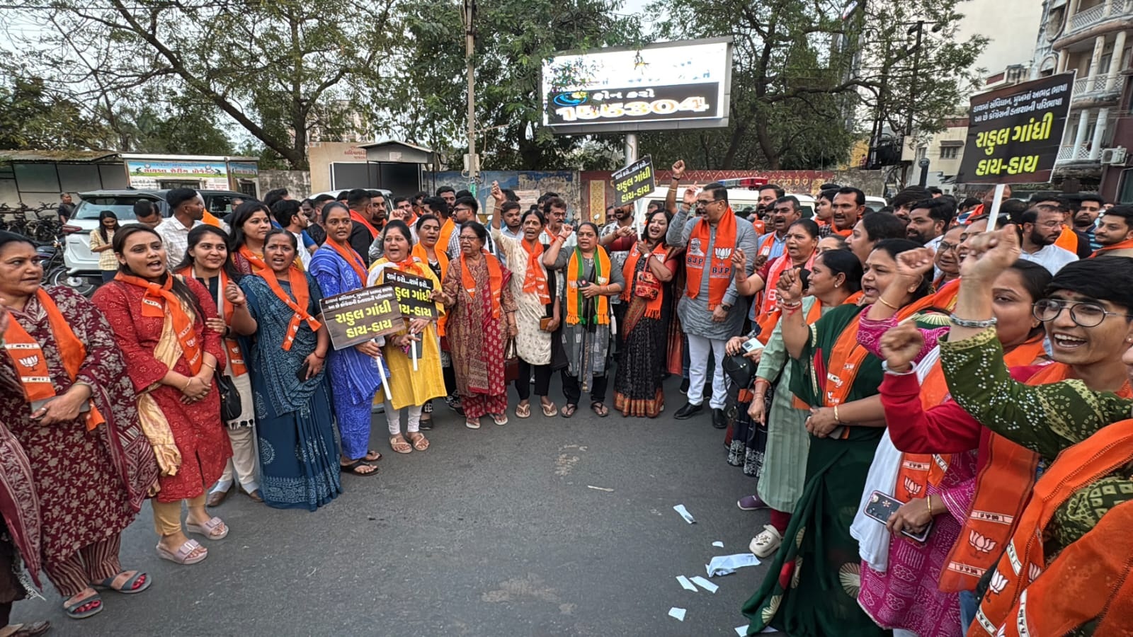AI સમિટમાં યુથ કોંગ્રેસે કરેલ પ્રદર્શનના વિરોધમાં રાહુલ ગાંધી વિરુદ્ધ સૂત્રોચ્ચાર