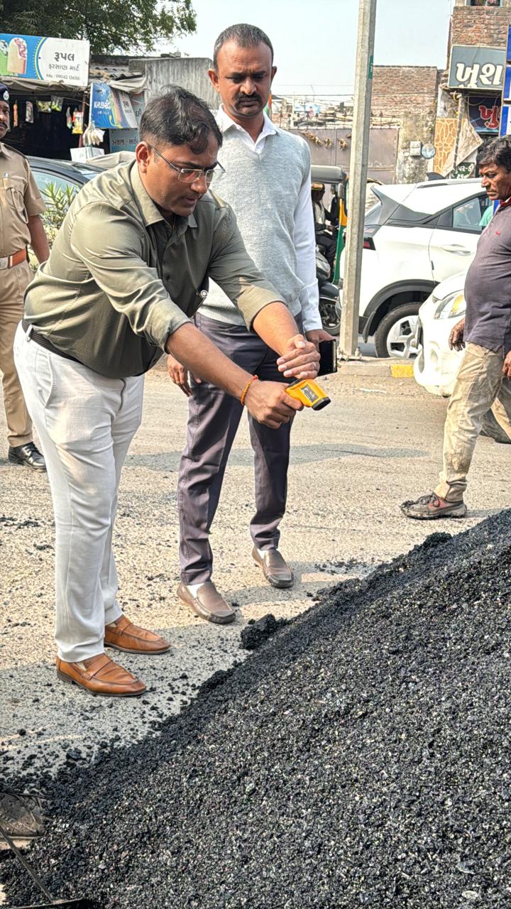 રાજકોટ મહાનગરપાલિકાના મ્યુનિસિપલ કમિશનર તુષાર સુમેરા દ્વારા શહેરમાં ચાલી રહેલી વિકાસ કામગીરીની ગુણવત્તા સુનિશ્ચિત કરવા હેતુસર આજે તા.03-02-2026ના રોજ અચાનક ફેરણી કરવામાં આવી હતી. આ ફેરણી દરમિયાન વોર્ડ નં. 11 સ્થિત ભીમનગર ચોક ખાતે ચાલી રહેલી ડામર રોડની કામગીરીની સ્થળ પર જઈને વિસ્તૃત ચકાસણી કરવામાં આવી. ચકાસણી દરમ્યાન ડામર કામગીરીમાં બેદરકારી સબબ એજન્સી, ડેપ્યુટી એન્જિનિયર અને ફીલ્ડ એન્જિનિયર સામે કડક કાર્યવાહી કરવામાં આવી છે. ફેરણી દરમિયાન મ્યુનિસિપલ કમિશનરએ ડામર જાડાઈ, સપાટી, મટિરિયલની ગુણવત્તા તથા ટેકનિકલ સ્પેસિફિકેશન મુજબ કામગીરી થઈ રહી છે કે નહીં તેની સ્વયં ચકાસણી કરી હતી. તપાસ દરમ્યાન કામગીરીમાં ગંભીર બેદરકારી તથા નિર્ધારિત ધોરણોનું પાલન ન થતું હોવાનું પ્રાથમિક રીતે સામે આવ્યું હતું.